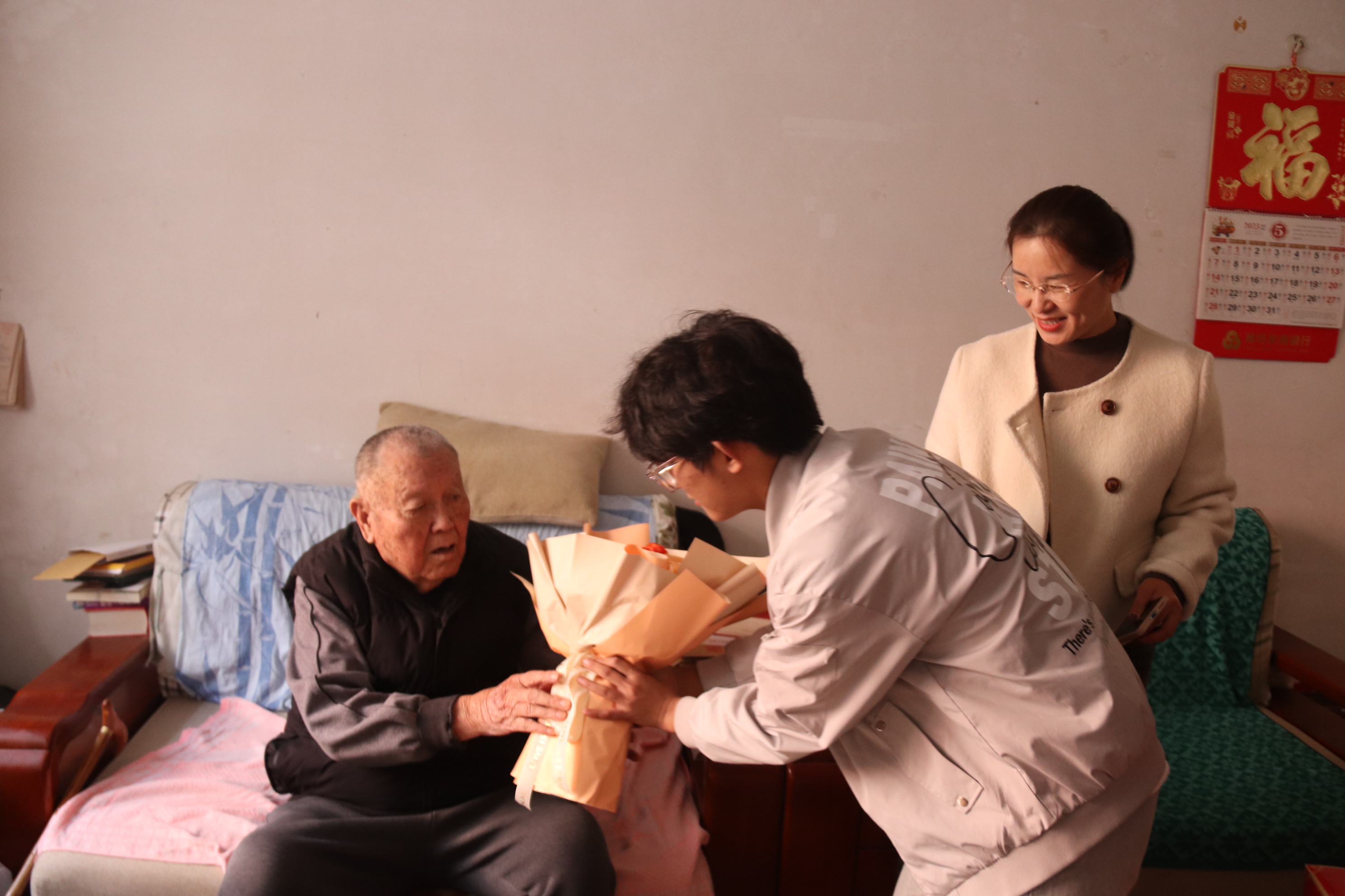 部分学生党员于10月20日前往曾参与抗美援朝战争的老人许世昌家中进行访谈慰问,举办“寻忆峥嵘岁月,致敬援朝老兵”主题党日活动。 学生党员走进抗美援朝老兵许世昌老人家中,为老人送上慰问祝福,了解其生活情况和身体状况。学生党员认真聆听老人讲解抗美援朝战役的背景与历程,了解战争期间中美双方国内发展情况与我国具体对敌策略。许世昌老人回忆阐述个人从军数十年的经历,描绘在抗美援朝战争中与战友们英勇战斗的场景。许世昌老人将抗美援朝臂章、抗美援朝纪念章一一展示给学生党员,并提到,国家安定、人民幸福是无数抗美援朝的战士用生命换来的,荣耀并非属于其个人,而是承载着昔日战友的鲜血与英勇无畏的精神。学生党员与老人面对面交谈,开展有关抗美援朝战争的访谈,询问此次战役的行动路线、武器装备、战略布置,详细记录抗美援朝战争的相关史实。老人激励学生党员坚定理想信念、勇担时代重任,争做新时代的有志青年,早日成为国之栋梁。 本次主题党日活动的顺利举办,有利于学生党员深刻认识抗美援朝相关史实,感悟志愿军慷慨奉献的革命精神,继承与弘扬伟大抗美援朝精神。