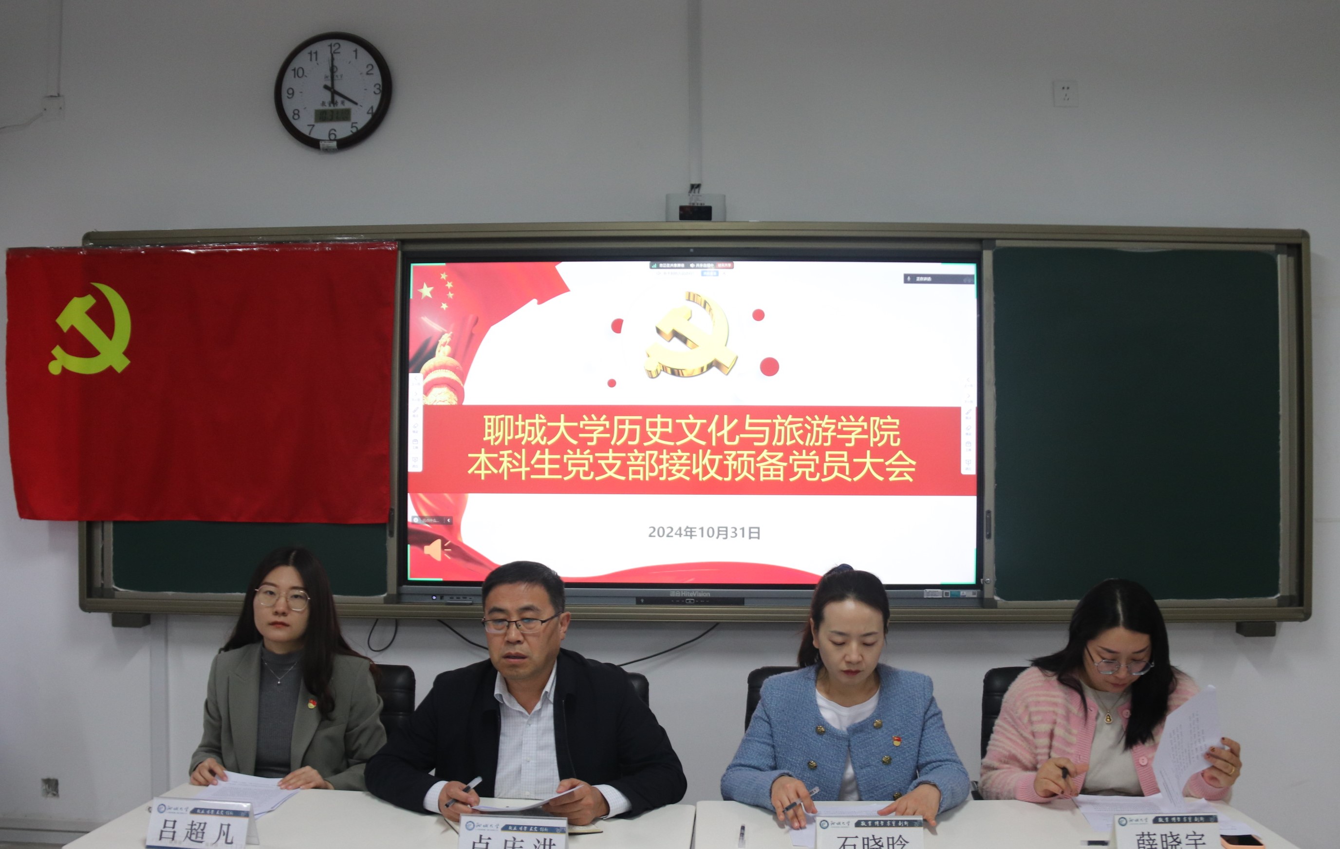 本科生党支部于6#A404教室召开支部党员大会,开展接收预备党员相关工作。本科生党支部共有党员40名,其中正式党员9名,预备党员31名。学院党委副书记、副院长卢庆洪,本科生党支部书记石晓晗、党委组织员吕超凡、辅导员薛晓宇出席本次会议。 25名预备党员发展对象依次宣读《入党志愿书》,向党组织汇报入党动机、对党的认识、个人履历、学习工作等情况,表明入党的强烈意愿和决心。各入党介绍人对发展对象的现实情况及培养教育过程进行详细报告,并表明同意介绍其加入中国共产党的意愿。随后,经与会正式党员无记名投票表决,刘蕾等25名发展对象符合入党条件,一致同意接收刘蕾等25名发展对象为中共预备党员。卢庆洪对党员提出要求:一要加强思想建设,坚定理想信念;二要强化党性修养,发挥示范作用;三要履行党员义务,践行使命担当。 本次大会的顺利召开,有助于为学院本科生党支部增添新锐力量,提高党员队伍素质,筑牢基层党组织的坚实基础,不断增强党支部的引领力和向心力。今后,本科生党支部将用实际行动践行党的宗旨,书写无愧于时代的壮丽篇章。 (供稿:宋佳珊 摄影:于舒然 初审:张程程 复审:李月 终审:石晓晗 尤姗姗)