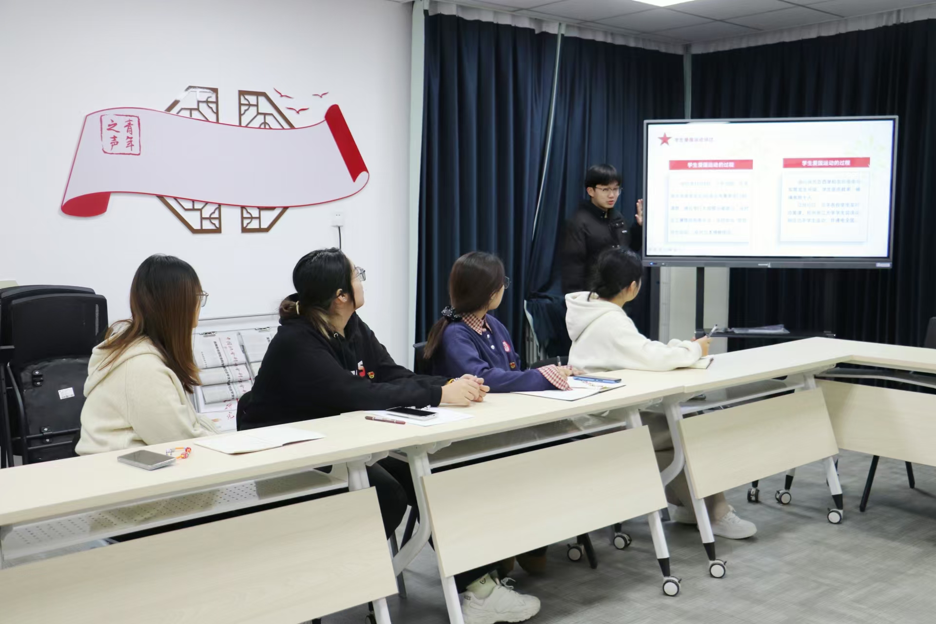 为纪念一二 九运动,缅怀革命先烈,激励学生党员牢记初心使命,12月9日,在“笃史博文”一站式学生社区举办“铭记一二九,学史忆峥嵘”主题党日活动,部分本科生党员参加本次活动。 本次活动由陈琳桐主持。学生党员集体观看纪录片《大抗战——一二九运动》,重温一二 九运动的斗争历史,深刻感悟革命先辈的爱国情感。学生党员陈琳桐聚焦爱国主义精神,通过PPT详细解读一二 九运动的时代价值,号召学生党员以奋斗之姿,建功新时代。在交流分享环节,学生党员深入探讨如何在新时代弘扬爱国主义。学生党员踊跃发言,纷纷表示将以革命先烈为榜样,以更加饱满的热情投身学习和工作,赓续红色血脉。 铭史祭英烈,鉴往启新程。本次活动的顺利举办,有利于增强学生党员的社会责任感、历史使命感和民族自豪感,提升他们的思想政治素养,进一步推动学院党建工作建设。 (供稿:王梦 摄影:王梦 初审:王舒心 复审:张程程 终审:石晓晗 尤姗姗 )