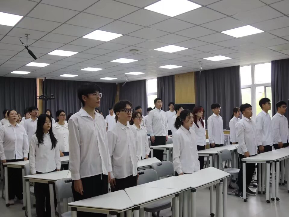 于6#A301教室举办2025年度新团员入团宣誓仪式。团委书记石晓晗,党员代表郭佳璐、万寿宏,优秀团员代表以及新发展团员参与此次新团员入团宣誓仪式。 随着激昂的国歌旋律响起,全体团员肃立,齐声高唱国歌,致敬祖国,入团仪式正式拉开序幕。 主持人刘昕媛宣读新团员名单,经过团组织的培养考察,共有19名先进青年被发展入团。石晓晗、郭佳璐、万寿宏为新团员颁发团员证与团徽徽章。 优秀团员代表韩明宇带领新团员面向团旗进行庄严地宣誓。新团员代表徐会锴围绕团员的思想、行动与责任三方面进行发言。他鼓励广大青年团员要知行合一,积极投身志愿服务,用青春力量传递温暖。团员代表李瑞瑄以共青团员所肩负的实现中华民族伟大复兴的历史使命对于共青团的使命的重要意义为出发点,将课堂所学与社会所需相结合,用一言一行诠释共青团员的品德追求。 石晓晗在学习工作中为新老团员提出四点建议,第一,要坚定理想信念,坚守原则底线,勿以恶小而为之;第二,努力学习,勤奋刻苦,保持对知识的好奇心,主动探索专业知识;第三,积极参加志愿服务、社会实践等活动,德智体美劳全方位成长;第四,发挥模范带头作用,树标杆做示范,在充分发挥自身优势的同时积极服务同学。 全体同学放声齐唱《中国共青团团歌》,新团员入团仪式在洪亮的歌声中落下帷幕。 本次入团宣誓仪式的成功举办,不仅有利于增强团员对团组织的归属感,强化集体意识,更有利于增强新发展团员的责任感和使命感,传承共青团的坚持与奋斗精神,从而激励新团员以誓言为指引,践行青春担当。 团员感悟 2023级5班张志飞:共青团是中国共产党领导的先进青年组织,是一个凝聚着无数远大理想抱负的青年力量的地方,它不仅能够指导我们建立正确的人生观和价值观,还能够引领我们的思想走向成熟。我深刻感受到,只有加入先进的青年组织,才能够更好地锤炼自己的品德和才能,只有成为共青团员,才能够更好地理解社会主义事业,为国家和社会发展贡献自己的力量。 (供稿:孙蕾 摄影:孙蕾 初审:裴一玮 复审:李月 终审:石晓晗 尤姗姗)