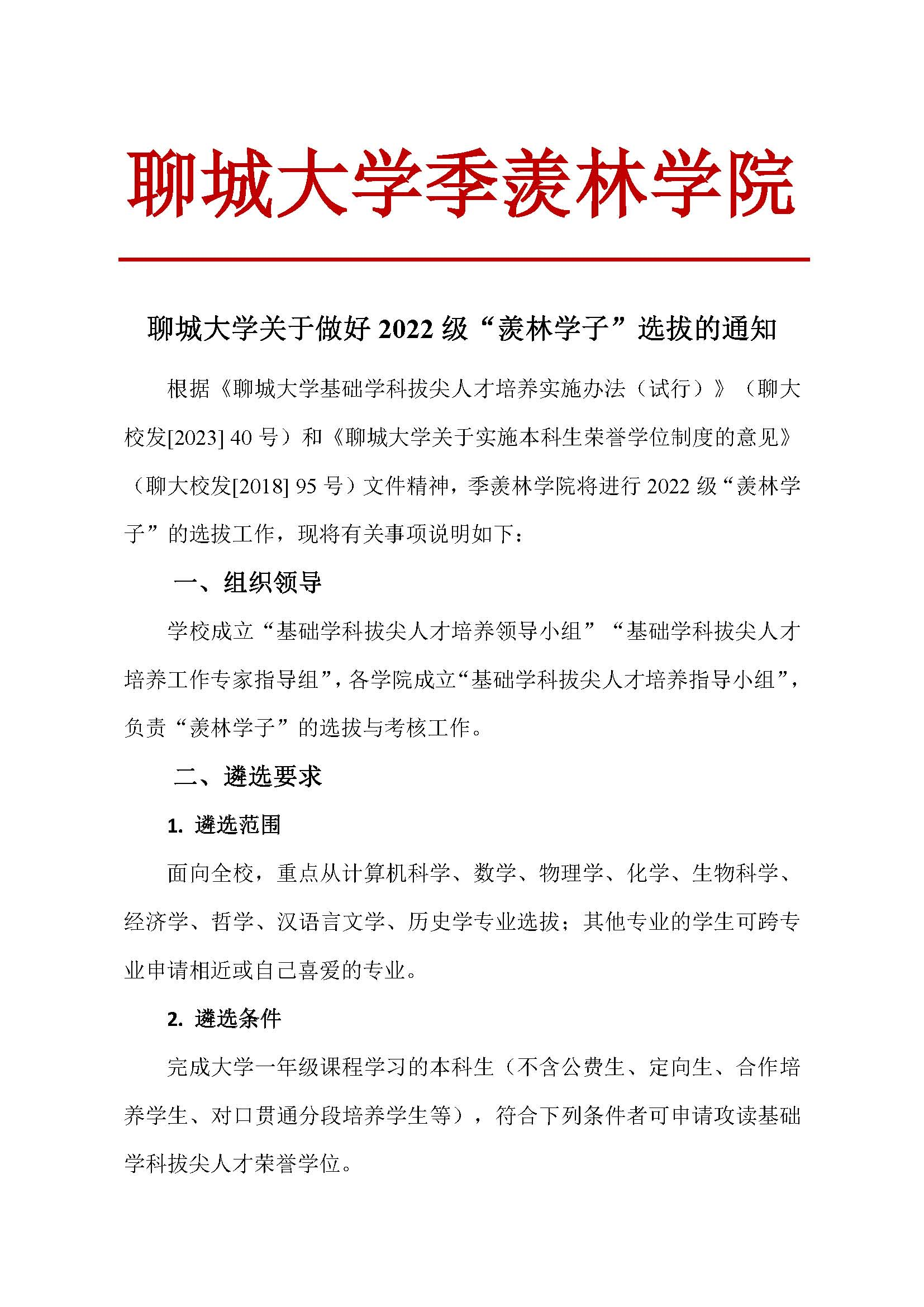 第一版主 关于做好2022级“羡林学子”选拔的通知