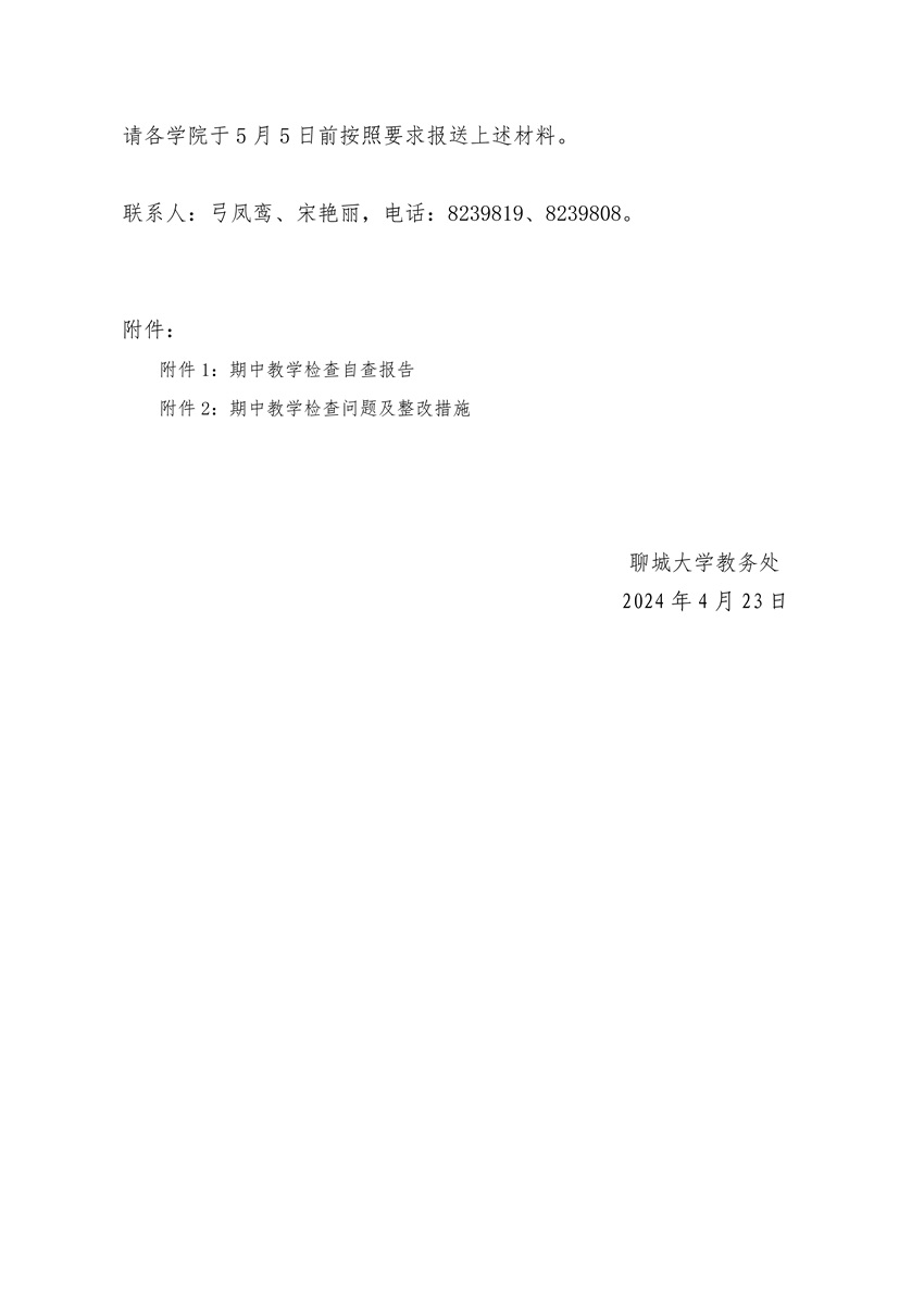 关于开展2023-2024学年第二学期期中教学检查工作的通知