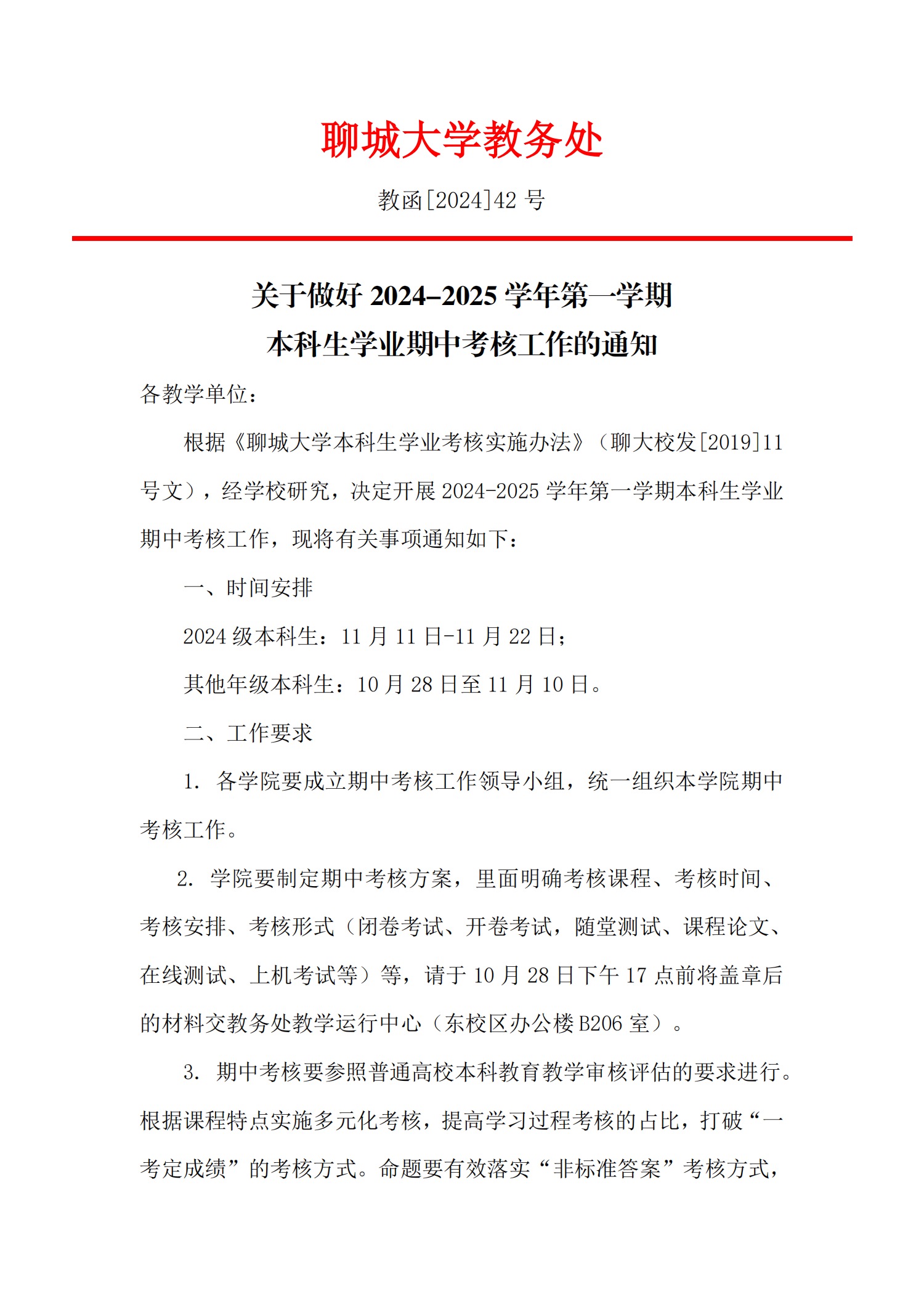 关于做好 2024-2025 学年第一学期本科生学业期中考核工作的通知