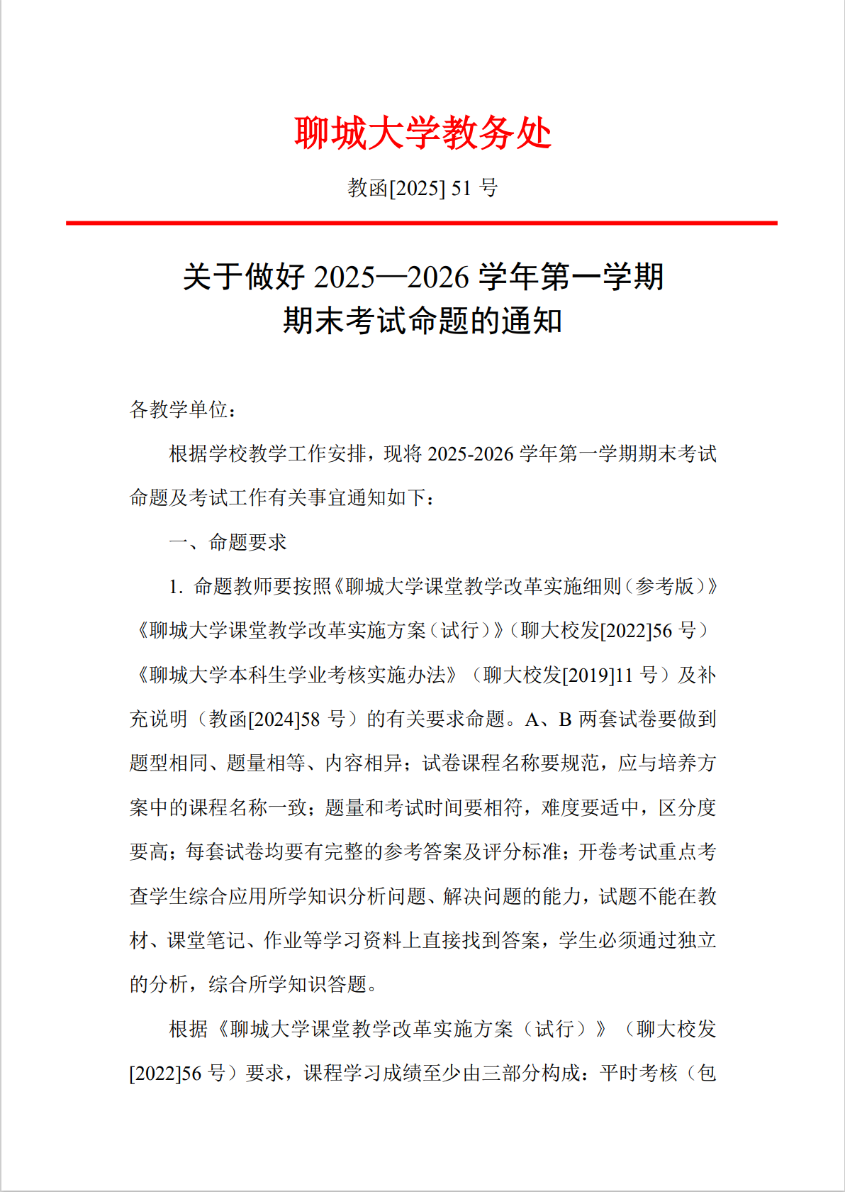 关于做好2025—2026学年第一学期期末考试命题的通知