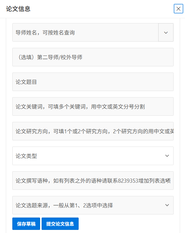 学士学位申请信息填报系统操作说明 1.系统登录:推荐使用微信或企业微信登录填报系统 本科生学士学位申请信息填报系统已与数字聊大系统对接,登录数字聊大后,在浏览器中打开网址即可登录填报系统,无需输入账号密码,已经绑定企业微信的用户可以把上述网址复制到微信或企业微信中,直接在微信或企业微信点击网址即可登录填报系统。 其他方式进入系统的如未登录数字聊大将跳转到数字聊大登录页面,登录数字聊大后点击确认登录进入填报系统,如果没有自动跳转再次输入系统网址即可。 3.请严格按照系统提示信息填报,填报无误后提交论文信息。 4.填报中如有问题可由班委发2021级班委教务QQ群,或报本学院教务办公室。 5.数字聊大登录问题请点击数字聊大登录页面 在线技术支持或联系网络中心。