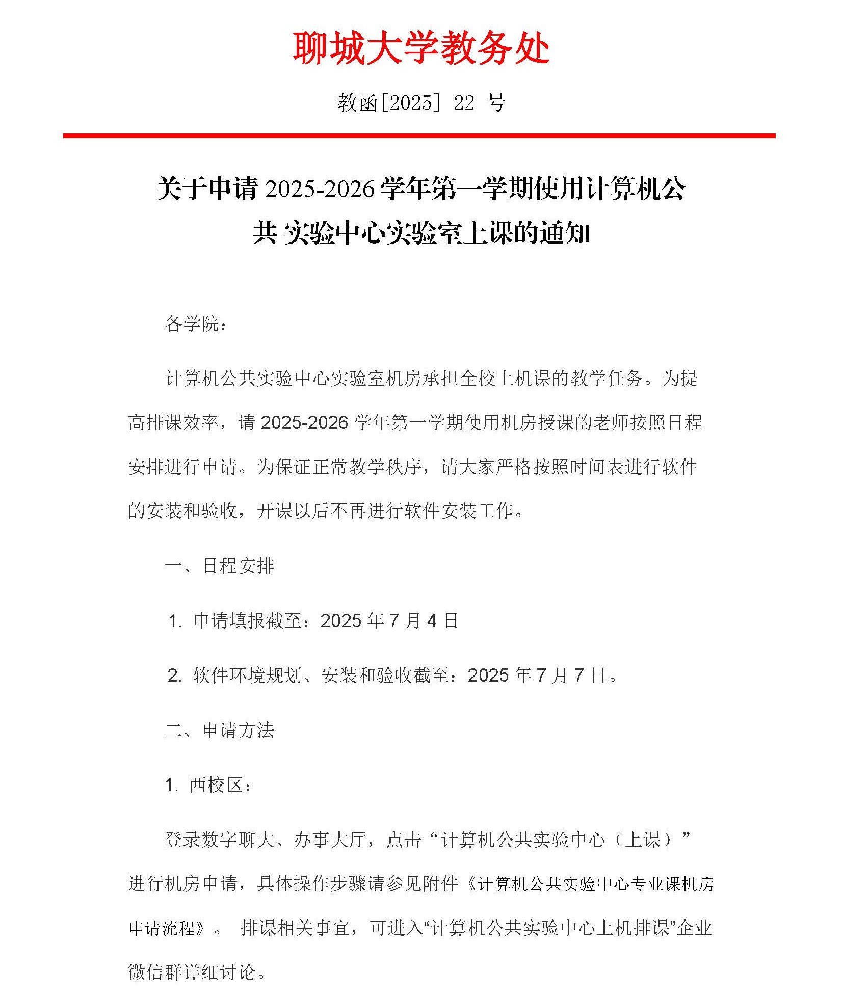 关于申请2025-2026学年第一学期使用计算机公共实验中心实验室上课的通知