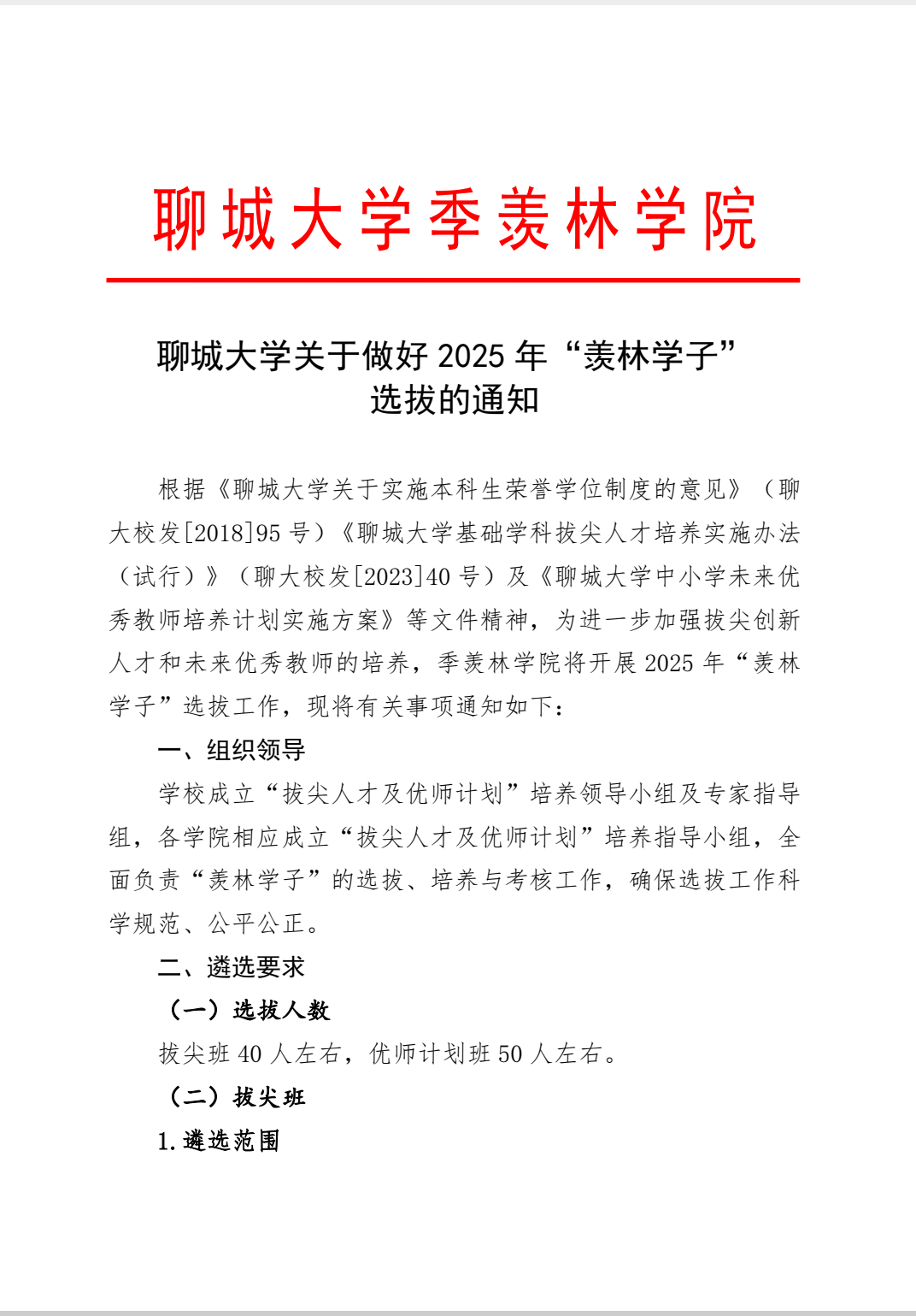 第一版主 关于做好2025年“羡林学子” 选拔的通知