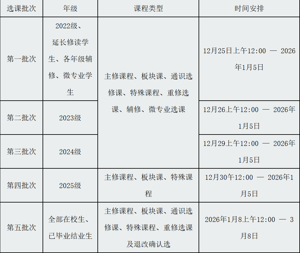 关于做好2025-2026学年第二学期网上选课工作的通知