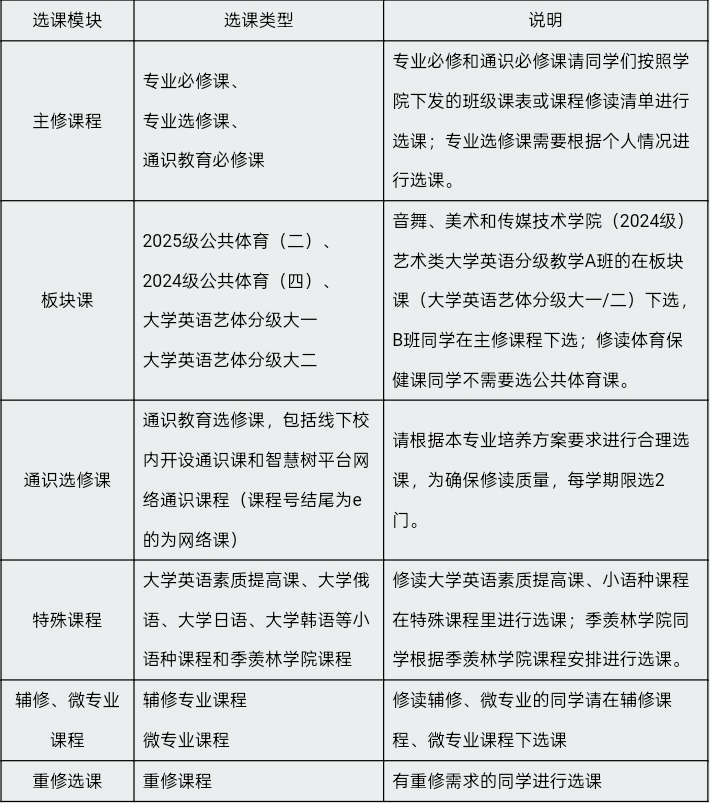 关于做好2025-2026学年第二学期网上选课工作的通知 各学院: 根据学校教学工作整体部署,2025-2026学年第二学期本科生选课工作即将开始,请各学院根据《第一版主