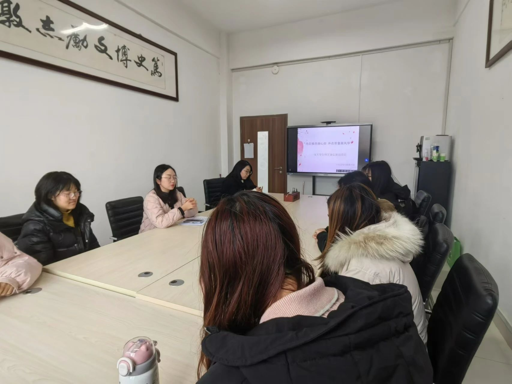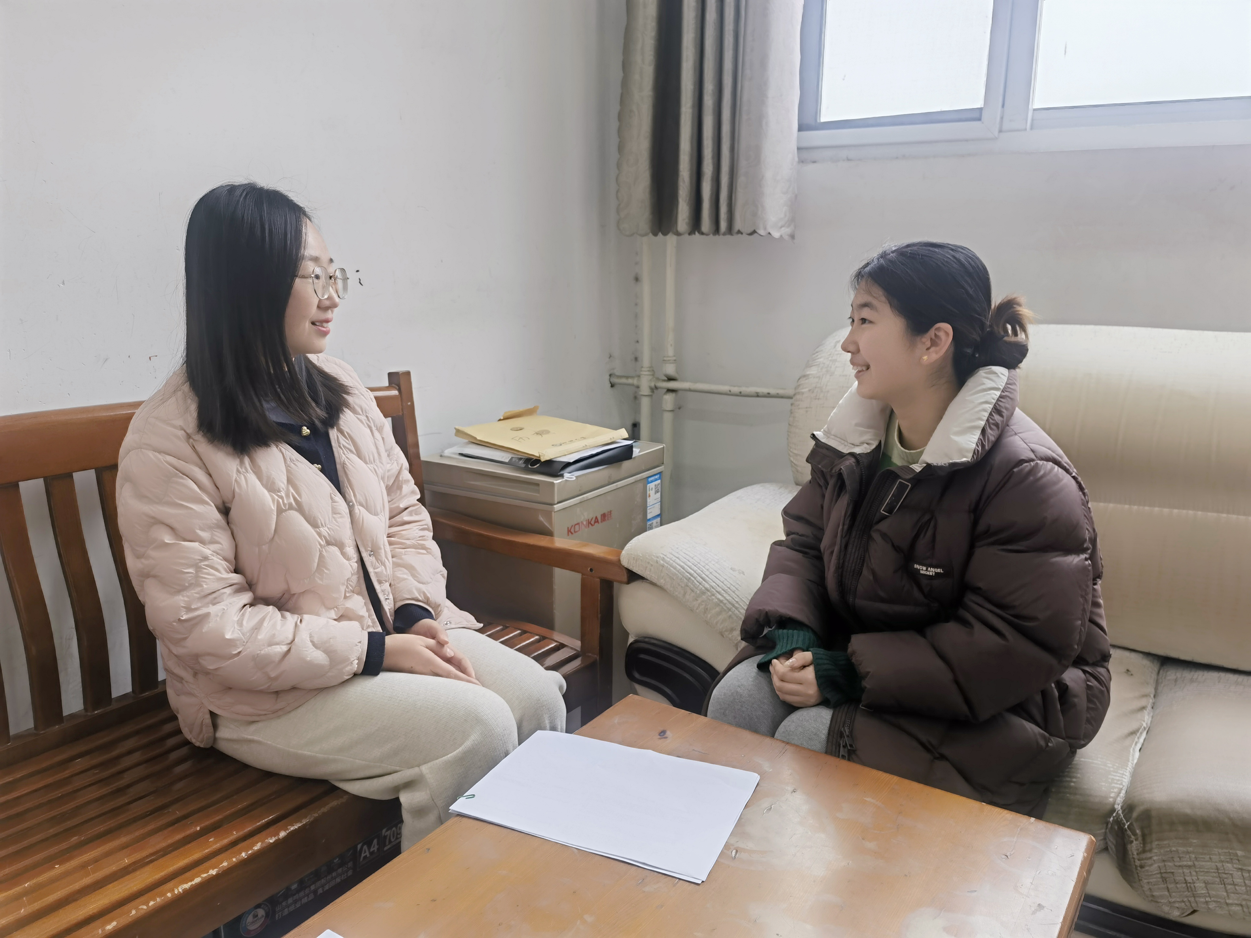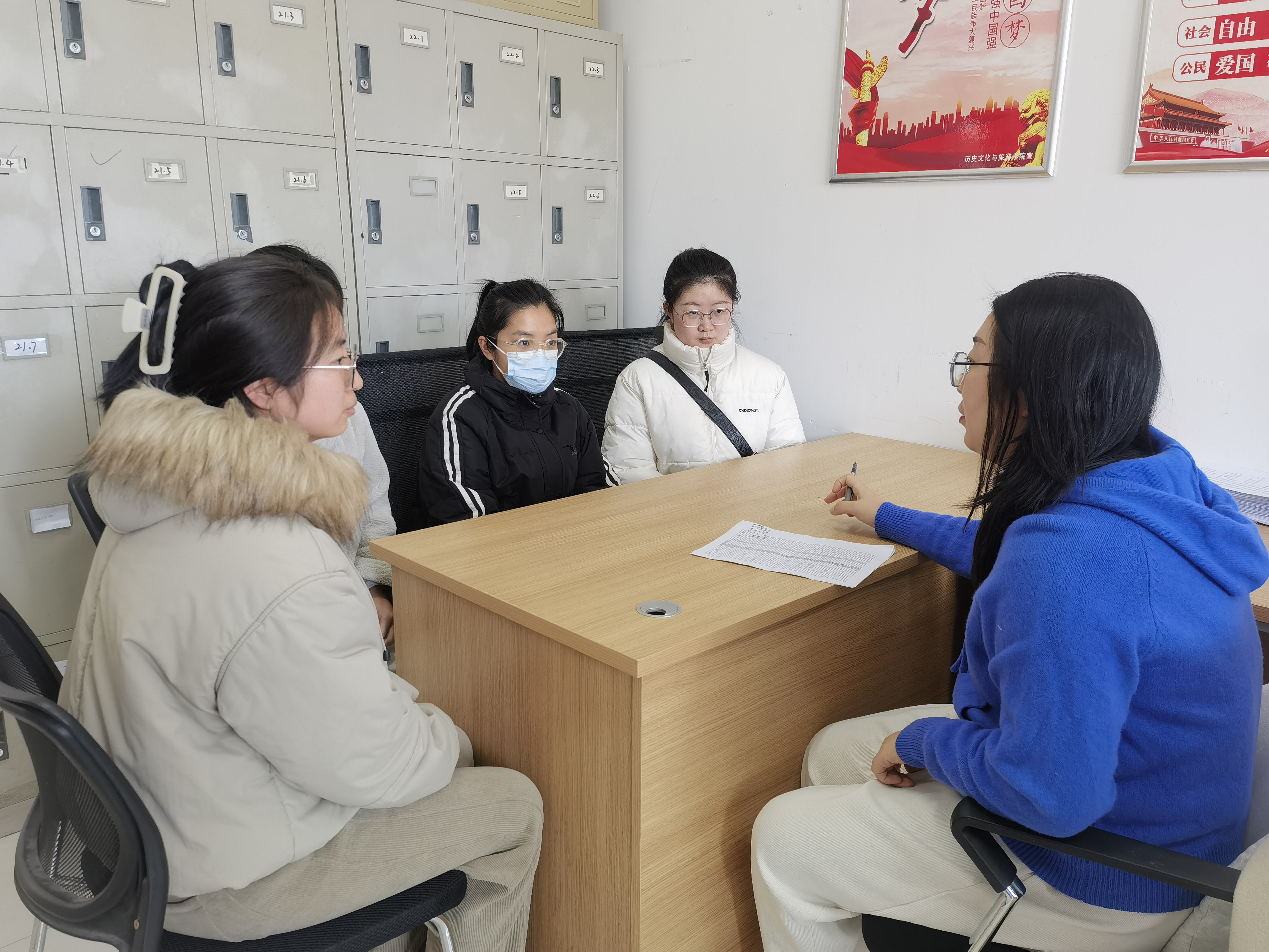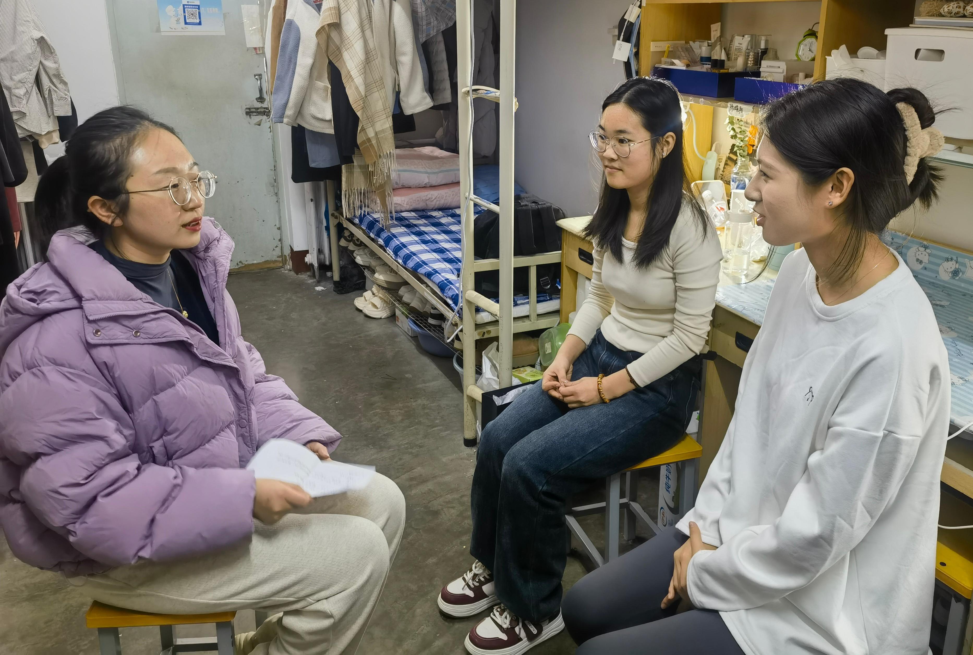 组织了“一对一师生谈心谈话”活动。在此活动中,师生间的深入沟通,如同春风化雨,滋润了每位女大学生的心田。 团委书记石晓晗,辅导员尤姗姗根据每位学生的具体情况,提供切实可行的建议和解决方案。通过这种面对面的沟通,师生关系更加紧密,女大学生的心理健康得到更加细致的关怀与呵护。 关爱女大学生小组谈心谈话活动 12月6日,在辅导员薛晓宇办公室开展了一场小组师生谈心交流活动。在专业课程学习方面,薛晓宇根据女大学生的学习情况,推荐高效的学习方法,以帮助女大学生攻克学习困难。 在生活及心理层面,薛晓宇鼓励女大学生积极面对生活中的各种挑战,学会平衡学习与生活,并主动寻求老师的指导和帮助。 另外,薛晓宇为女大学生描绘出一幅充满希望的前程图景,激发她们对未来的憧憬和期待。通过这次难忘的谈心交流,师生之间的心灵纽带也更加牢固,为女大学生今后的学习与成长奠定了坚实的基础。 “师生零距离 温情暖人心”师生谈心谈话活动 为进一步深化师生之间的情感联系,解决女大学生生活实际问题,12月12日,第一版主