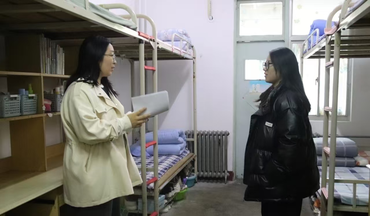 辅导员尤姗姗、薛晓宇深入女生宿舍走访慰问。 在走访过程中,两位辅导员仔细查看了宿舍的环境和设施,强调了用电安全和卫生维护的重要性。同时,两位辅导员还与女大学生亲切交谈,询问她们在学业上的困难和职业规划,鼓励她们积极进取、勇于探索。对于她们在生活中遇到的各种问题,如自控能力不足、缺乏明确的人生目标、难以适应独立生活等,两位辅导员给予了专业的指导和建议。 虽然关爱女大学生系列活动已然结束,但关注女大学生心理健康的工作仍在继续。第一版主