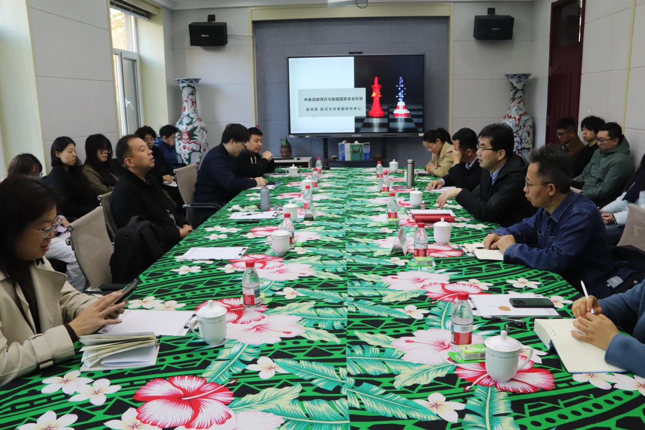 部分师生参会旁听。 他强调,国家安全是民族复兴的根基,必须坚定不移地贯彻总体国家安全观。赵明昊结合自身科研经验指出,做历史研究应秉持“小切口、大问题”“小切口、大关切”的研究思路,从细微处入手,聚焦重大问题与时代需求,为学术研究提供更具深度与现实意义的视角。 本次讲座内容丰富、见解深刻,使师生对中美关系的复杂性有了更深入的认识,对国家安全重要性有了更加清晰的理解,为 第一版主