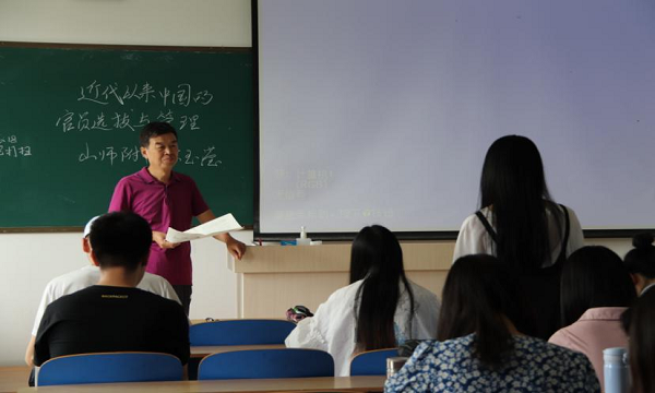 专业硕士研究生同学们作了题为“中学历史教学方法问题”的系列讲座。 本次讲坛共分为四讲内容。第一讲主题为“试做高考试题,分析核心素养”。司老师带领同学们重温了2020年高考历史真题,将高考真题中的考察点与新课改对培养历史学科核心素养的要求相结合,重点阐释了在教学中历史解释与历史理解的内涵和外延的不同点。第二讲主题为“落实核心素养的课堂设计”。司老师与同学们共同观看了山东省初高中历史课堂优质课视频,通过点评与讨论视频,使同学们深刻了解了在教学中形象化解释历史学科相关专业术语和概念的重要性。第三讲主题为“解读课程标准,感悟核心素养”。司老师在此讲中指出,历史学科的五大核心素养是一个整体,反映了不同方面的要求,在实际教学中不可分割,切忌贴标签。五大核心素养相辅相成,缺一不可。其中,唯物史观是历史学科核心素养体系的灵魂,分析问题要以马克思主义唯物史观作为统领;时空观念是了解历史的基础;史料实证是理解和解释历史的关键;历史解释是检验学生历史观、历史知识方法的主要指标。第四讲主题为“课后作业与考试设计”。司老师认为,在教学中课后作业与考试设计均要结合学习内容,以培养历史学科学习能力、增强核心素养为目标。 通过本次讲座,同学们深入了解了高中历史教学中的课程标准与核心素养要求,也使同学们对中学历史教学方法有了更深刻的认识,为日后的学习与工作积累了经验,指明了方向。 专家简介: 司宝海,1987年毕业于聊城师范学院历史系,现为济南外国语学校历史教师,中学正高级教师,全国优秀教师,山东省特级教师,第一版主