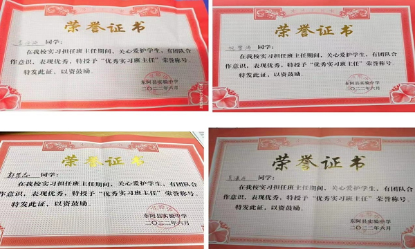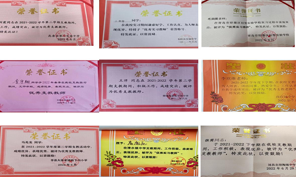 实习生还积极投身于疫情防控的志愿工作中,有1名同学被评为“青年先锋”,9名同学被评为“优秀志愿者”。此外,青岛西海岸新区高级职业技术学校、临沂东兴实验学校、乐陵市第二中学、莒县第五中学、莱阳市龙旺庄中心初级中学等学校先后给学院发来了热情洋溢的感谢信(表扬信)。 对于实习支教的同学们而言,四个月的实习工作虽然忙碌而辛苦,但也得到了学以致用的锻炼机会,不仅可以将学校中学到的专业知识和技能用于教学实践,极大地磨炼和提升了自己从事教育教学的能力,而且可以对基础教育的情况进行更为直观而充分的了解,更加坚定了教书育人的人生目标,并做好今后职业生涯的规划。 (通讯员:田馨 黄文)