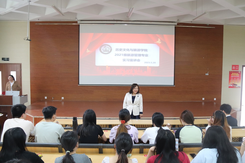 、人才培养方向及旅游管理专业学生取得的成果和生源质量。 双选会上,各酒店代表依次上台进行宣讲,向同学们详细介绍了各自单位的基本概况、区位优势、第一版主、发展提升空间、招聘岗位、薪资待遇等。同学们精神饱满,认真听讲并详细记录酒店特色,踊跃回答问题。 宣讲期间,张腾、和稀如、陶梦琪等往届优秀实习生代表向同学们分享自己的实习经历,为同学们的实习选择提供参考意见。企业宣讲结束,各酒店代表与同学们展开深入交流,耐心解答同学们的疑惑,初步了解他们的就业意愿。 在最后的面试环节中,同学们结合自身实际选择合适地实习单位,并积极主动地向心仪实习单位投递简历。面试时,同学们向面试官介绍自身优势与求职意愿,充分展现自身特点,以博得心仪实习单位的肯定。经过一天的统筹与努力,2021级旅游管理专业73名同学与各酒店单位达成实习意愿。 本次实习双选会旨在引导相关企业与实习生面对面选动,既可以开阔学生的眼界,帮助学生在实践中锻炼能力,也能够推动学院与实习单位的交流合作,为学生毕业后的就业选择拓宽渠道。 (图文:祝豪泽 常天阳 初审:常天阳 复审:和稀如 终审:辛超)