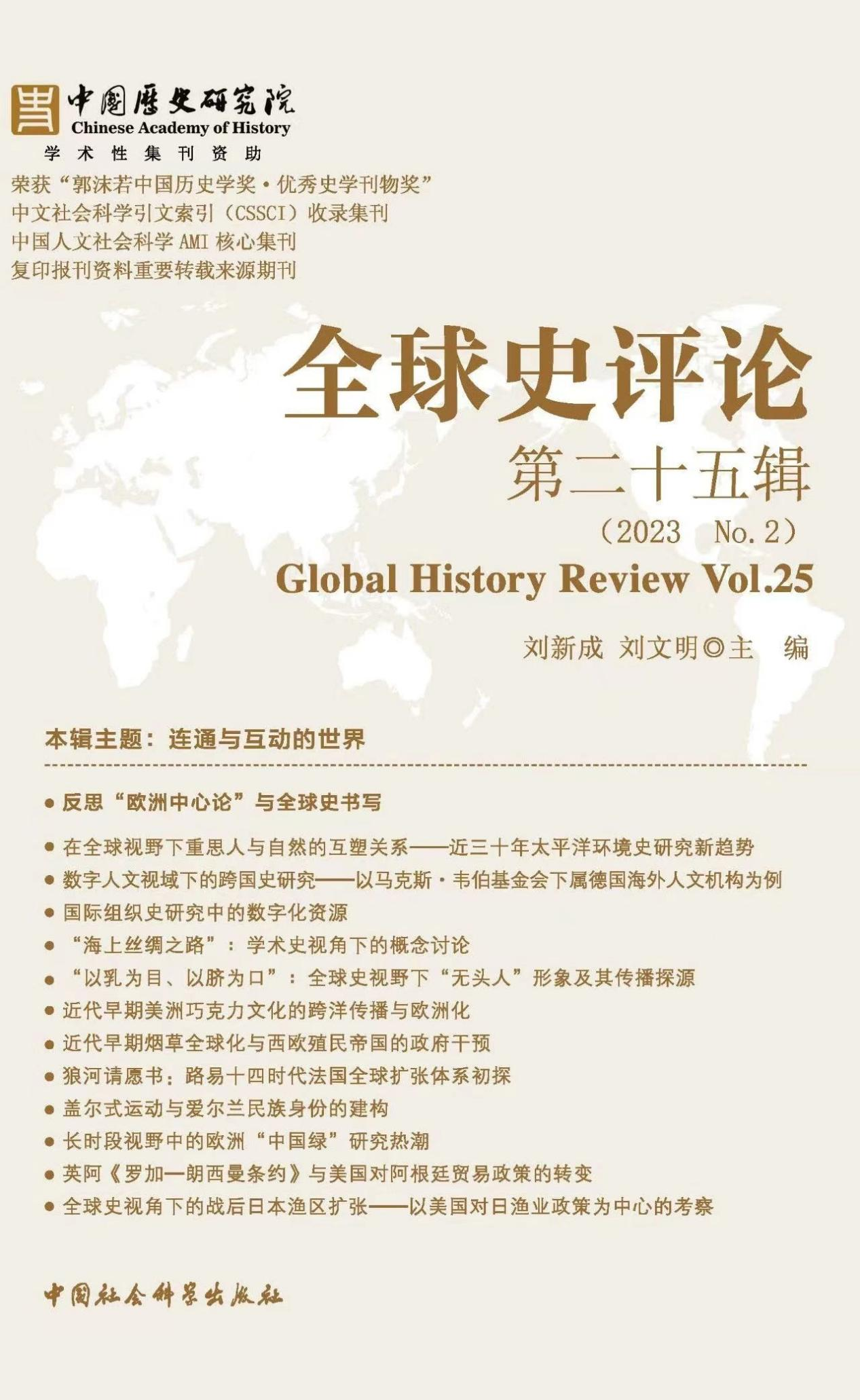 近日,CSSCI《全球史评论》公布第25辑目录,第一版主