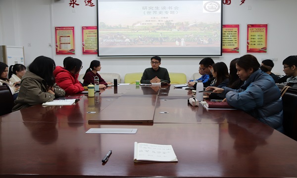 在6#104会议室举办第二期研究生读书会。本期阅读书目为斯文·贝克特的《棉花帝国——一部资本主义全球史》。此次读书会邀请吕俊昌老师担任评议人。 读书会伊始,吕老师对本期阅读书目进行了简要介绍,阐述了本书的基本观点,提出了自由资本主义并不“自由”的看法,并总结了本书的特点,即史料性、趣味性、情感性、发掘性。 在小组代表发言环节中,各小组代表以不同的视角表达了对本书的认识与看法。其中,同学们重点关注了种植园经济和奴隶制问题,得出美国种植园经济在资本主义发展过程中所起到作用由促进转向阻碍是历史发展的必然趋势的结论。此外,邱梦同学从写作方法的角度出发,认为历史研究要格外注重史料的收集筛选分析工作及方法论的创新。刘梅同学提出应结合欧洲对近代世界发展和资本主义全球化所发挥的主导作用这一背景来思考“欧洲中心论”。 在自由讨论环节中,同学们相继提出了自己的疑问,并与老师和在座同学进行了讨论。 此次研究生读书会开拓了研究生同学们历史研究的全球化视角,为同学们提供了历史事实与人文关怀相结合的学术研究和写作方法,锻炼了研究生的史学思维和学术科研能力。