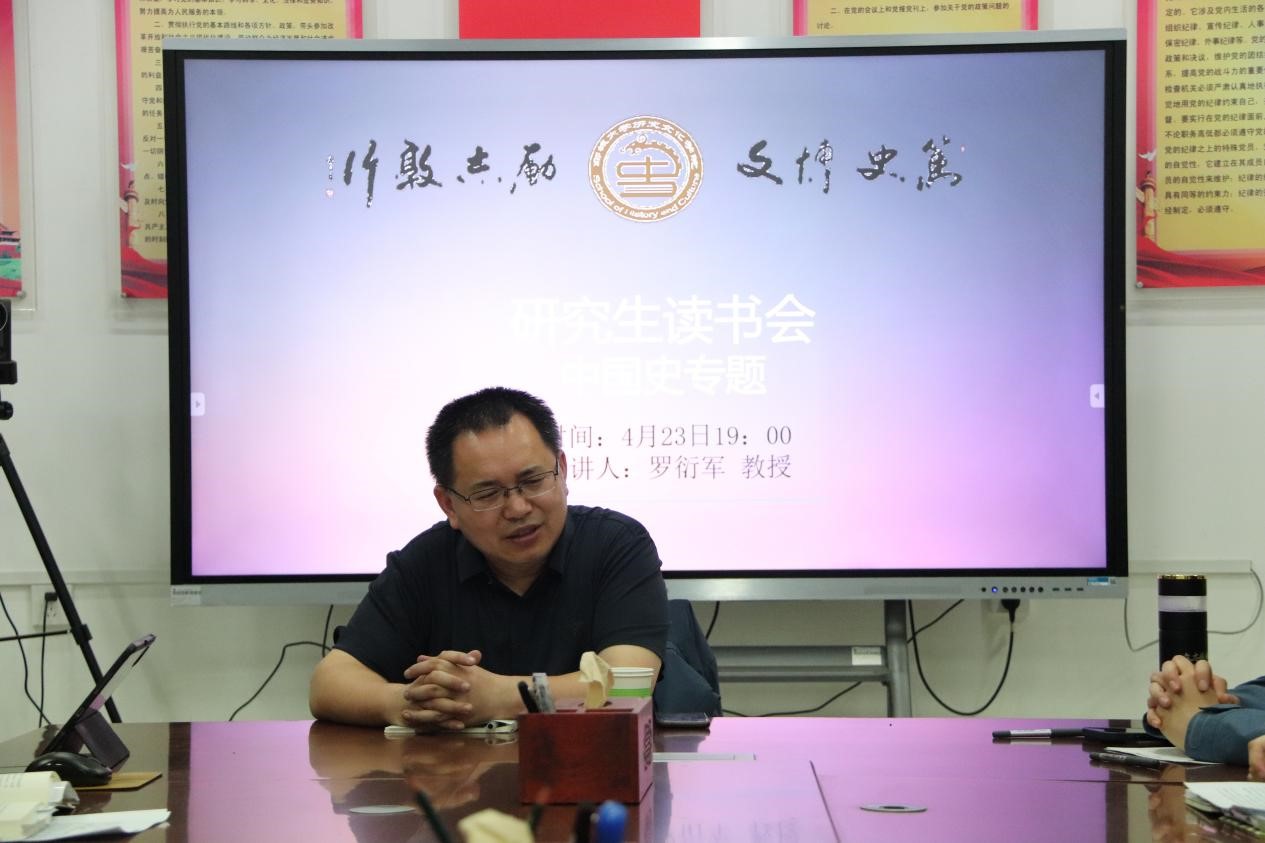 罗衍军教授应邀担任本期读书会的主讲人,研一研二中国史专业同学参加。 罗衍军教授简要介绍了《腹地的构建:华北内地的国家、社会和经济(1853-1937)》,一书,并阐述了推荐该书的理由。罗教授指出,该书是研究中国现代化问题的重要著作,对中国现代史上一些重大问题进行了全新评价。该书的研究范围主要聚焦在黄运地区,对于同学们了解清末民初华北内地的社会、经济和生态变迁具有重要意义。 在小组代表发言环节,同学们各抒己见。徐关涛同学指出,本书主要研究了国家政策转型、国计与民生问题以及黄运地区南北差异的原因及其深远影响,作者以运河兴衰变迁为线索,从更宏观的视角审视了近代以来中国社会经济的变迁。张静同学以清政府和南京政府因对民生灾害投入不足致使失去民心为例,强调政府的职能不应局限于经济发展,还应关注治水、灾害防治等方面。李心如同学分享了她在本书中获得的启示:研究历史问题时,从多个视角出发,全面分析,才能得到更真实客观的结果。陈璇同学详尽地阐述了黄运地区从“核心地区”到“边缘地区”的转变,指出黄运地区交通条件的衰退导致了经济的衰落。展延晗同学认为,社会稳定在某种程度上优于经济发展,清政府至民国政府忽略了中国社会的复杂性,导致国家构建战略失败。张越同学结合书中内容指出,共产党通过土地改革、治水等措施满足了底层农民的需求,底层农民决定了近现代历史的方向,因此共产主义革命胜利具有必然性。王雨辰同学发现,基层政府缺乏有效的资源分配机制,是黄运区腹地在近代经济状况急剧恶化的一个重要原因。于博文同学从宏观、中观、微观三个层面对本书着重论述的几组关系作出解释,并指明作者的观点:“腹地”并不是由于地域差异天然形成的,而是在某一特定的历史时期由人为“构建”出来的。金天同学从教育角度解释了腹地坍塌的原因:高素质知识分子倾向于发达地区,加剧了城乡差距,导致腹地坍塌。 在点评答疑环节,罗教授结合自身治学经验和对本书的理解,对同学们的问题进行解答,并为他们的论文写作提供了宝贵建议。罗教授指出,同学们在阅读过程中要积极思考,尝试理解作者在书中所表达的意图和观点,并从中获取启发。特别是对于历史研究领域的学生来说,深入理解书籍背后的核心思想能够为他们提供独到的研究视角和方法。