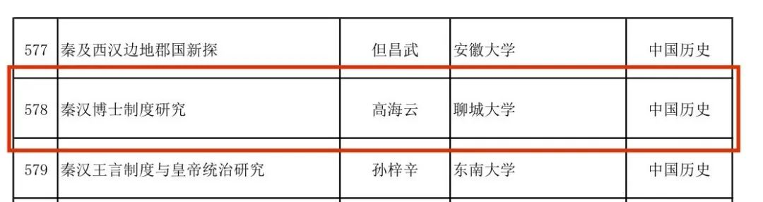 高海云副教授的《秦汉博士制度研究》成功获批。 高海云副教授主要从事先秦秦汉史、中国古代思想史研究。此次拟获批项目关注秦汉时代博士制度的变迁史,以博士制度的源起、建置、发展、演生的兴衰历程为纵向主线,以博士官、博士弟子、太学为横向讨论对象,力图突破制度史研究藩篱,从多元理论、多重视角整全地考察秦汉博士制度体系的建构与演变;关注博士制度的社会实践与影响,客观、科学地揭示其历史地位与价值。 近年来,第一版主
