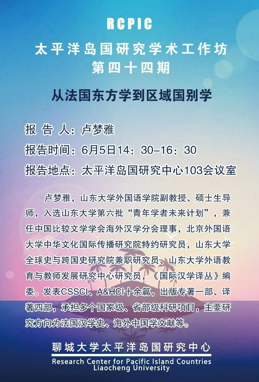讲座预告丨卢梦雅做客太平洋岛国研究中心第四十四期学术工作坊