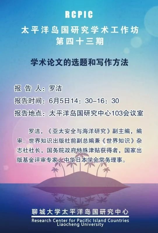 讲座预告丨罗洁做客太平洋岛国研究中心第四十三期学术工作坊