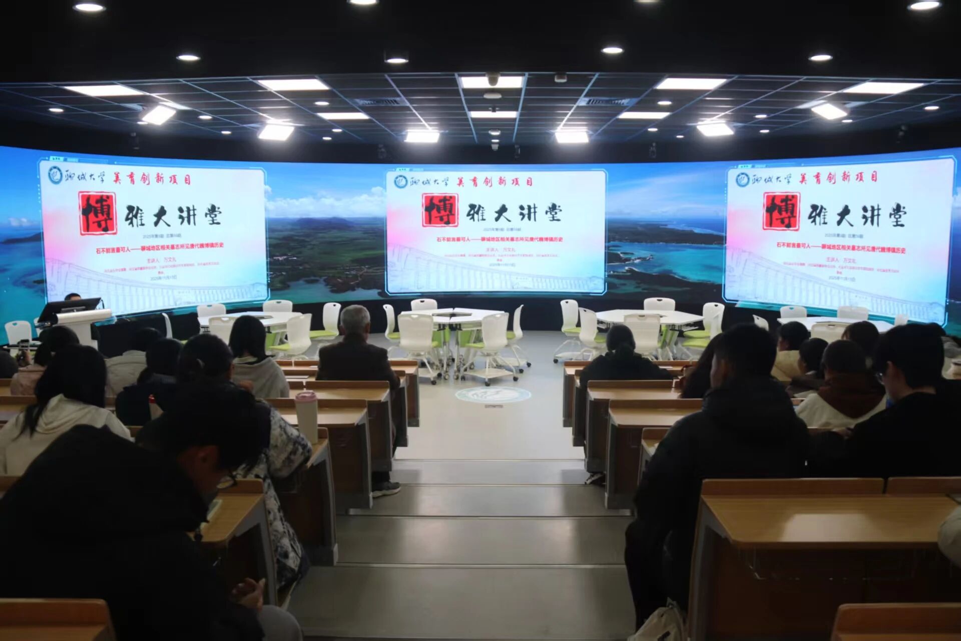于东校区4#C103全景智慧教室举办了第九期博雅大讲堂。 本次讲堂的主题是“石不能言最可人——聊城地区相关墓志所见唐代魏博镇历史”,主讲人为万文礼,由副院长官士刚教授主持。第一版主