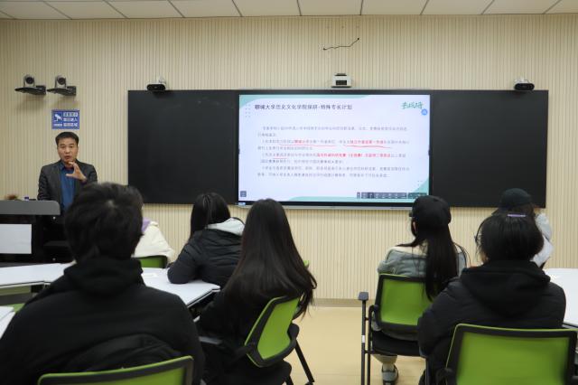 保研政策,他先为同学们详细讲解保研的基本知识,涵盖申请流程、考核方式及本校推荐免试等内容,帮助同学们初步建立起对保研的认识。他强调绩点、英语和科研竞赛在考核中的重要性,鼓励同学们尽早加入课题组,积极参与各类竞赛,进行合理规划。同时他还结合往届学员的学习规划和经验,重点介绍保研夏令营的时间和入营要求等基本情况,并为同学们分享在夏令营遇到问题时的解决措施和宝贵的竞赛经验。 互动环节,同学们积极交流、踊跃提问,与主讲人展开深入探讨。主讲人借助自身经验,耐心地为同学们答疑,提供诸多实用且有效的宝贵建议,进一步加深同学们对保研政策的理解,同学们纷纷表示受益匪浅,表示要为自己未来四年做好清晰的规划。 本次活动顺利举办,不仅有助于同学们尽早明确学业目标,积极规划求学方向与路径,更有助于激发他们追求卓越、勇攀高峰的斗志,相信同学们将在学业道路上砥砺前行,再创佳绩。 (供稿:罗佩华 摄影:罗佩华 初审:于舒然 复审:张程程 终审:尤姗姗)