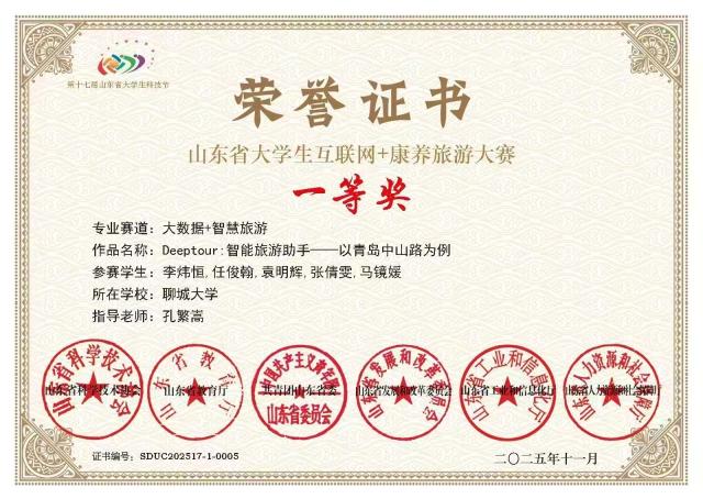 为提升大学生的科技创新与文旅融合实践能力,推动“互联网+”与康养旅游产业的深度融合,第十七届山东省大学生科技节之互联网+康养旅游大赛成功举办。在本次大赛中第一版主