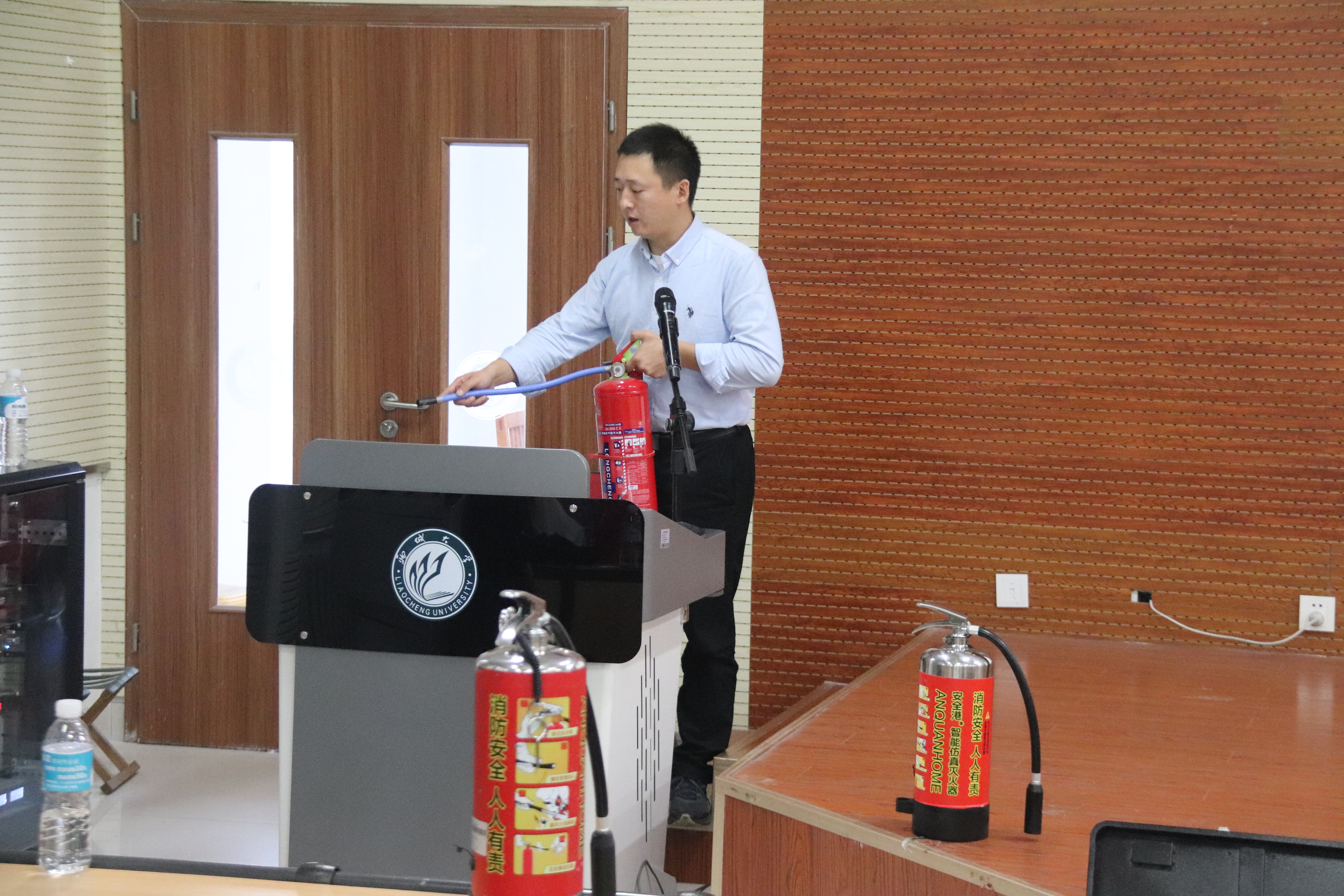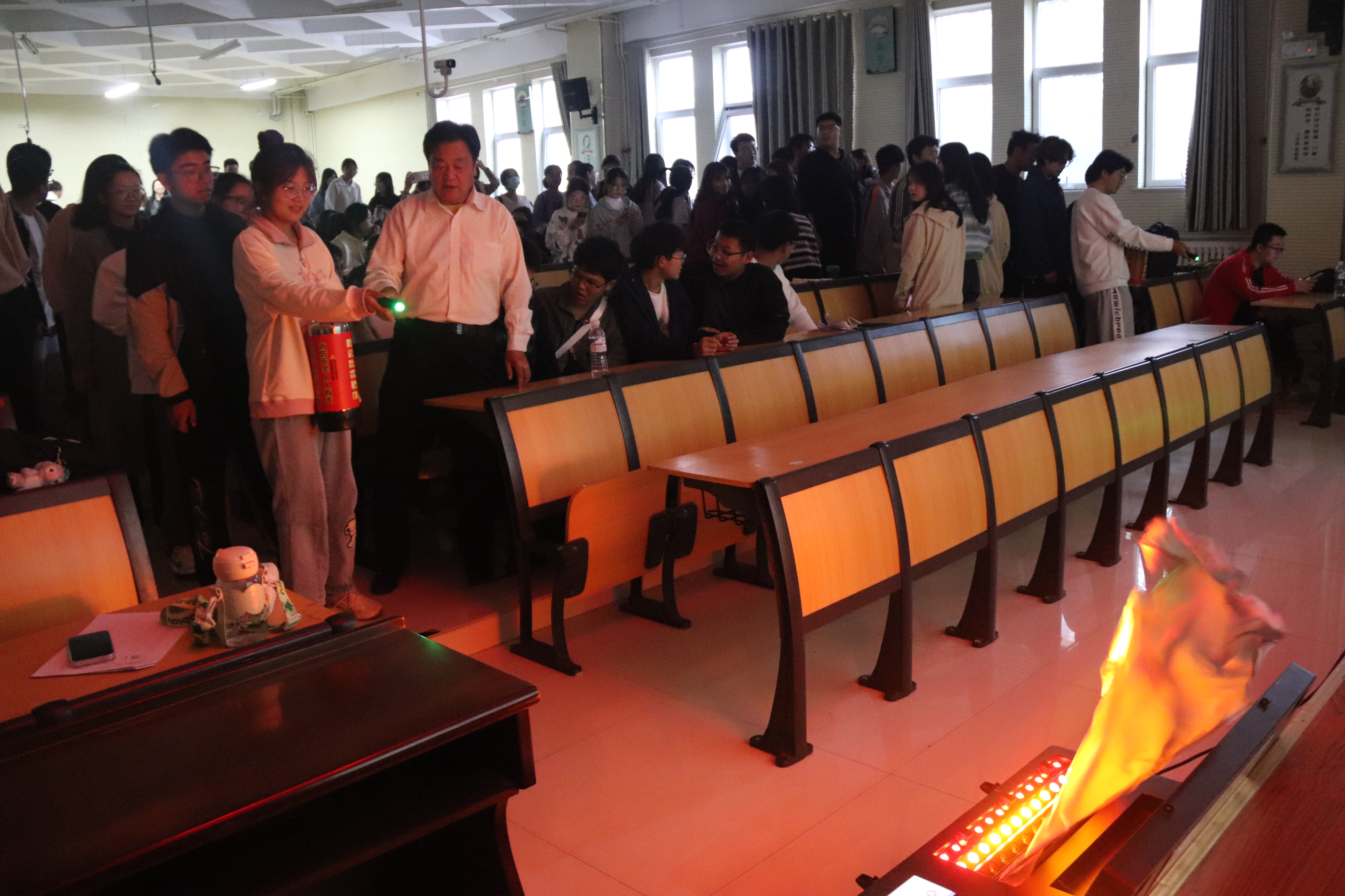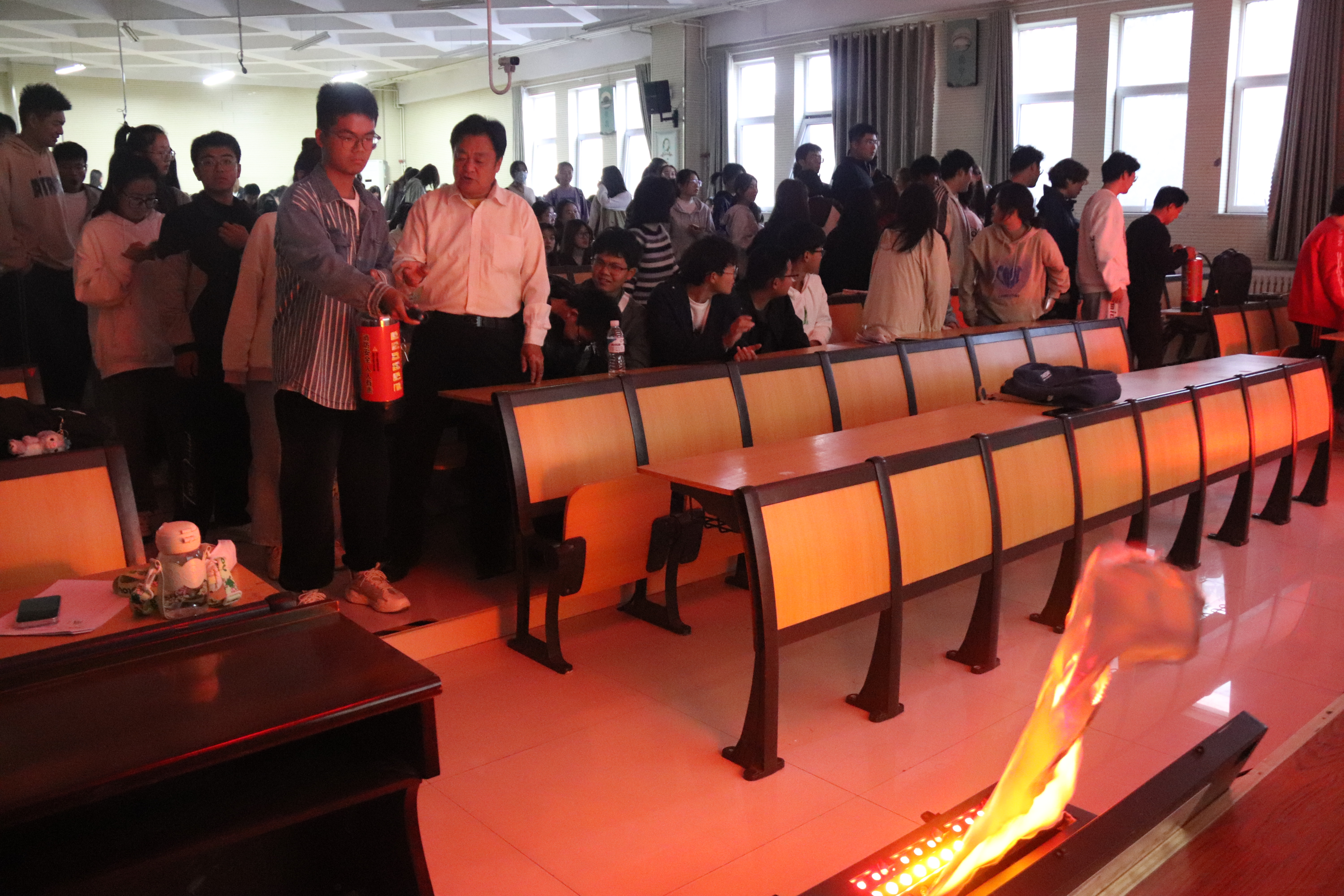 于6#A106报告厅举办2023年秋季学生消防安全培训及演练。 活动伊始,主讲人向同学们介绍消防基础知识,从根本上帮助同学们了解消防、走进消防。主讲人强调火灾的伤害力与危险性,介绍燃烧三要素,火灾等级火灾分类,科普消防器械类别。主讲人指出同学们进入陌生场所时,应及时了解场所逃生路线,做到“四懂四会”、“三清三关”。其中,主讲人着重为同学们讲述拨打119时的注意事项,要讲清建筑名称、地址、起火部位、燃烧物质等,切忌慌乱。随后,主讲人在大屏幕上投出示例照片,为同学们讲述校内几起宿舍起火事件,用真实案例警醒同学,使消防意识深入人心。 在讲述完示警案例后,主讲人持4公斤手提式灭火器,结合“提、拔、握、瞄、扫、压”六字口诀向同学们展示灭火器正确操作方法及注意事项。 紧接着,主讲人邀请同学们亲自使用电子灭火器模拟灭火过程,将消防理论落实于实践。同学们积极配合,现场气氛融洽。活动最后,主讲人呼吁同学们加入文明住宿、谨防火灾的行列之中,从小事做起、从日常点滴做起,为营造安全舒心的住宿环境贡献力量。 本次消防安全培训及演练的成功举办,有助于学生切实认识到预防火灾的重要意义,提高紧急情况之下的避险能力与应急处置能力,进一步助力安全校园的发展建设,筑起安全的“防火墙”。(通讯员:庄欣彤) (供稿:庄欣彤 摄影:庄欣彤 初审:祝豪泽 复审:吴志钰 终审:尤姗姗)