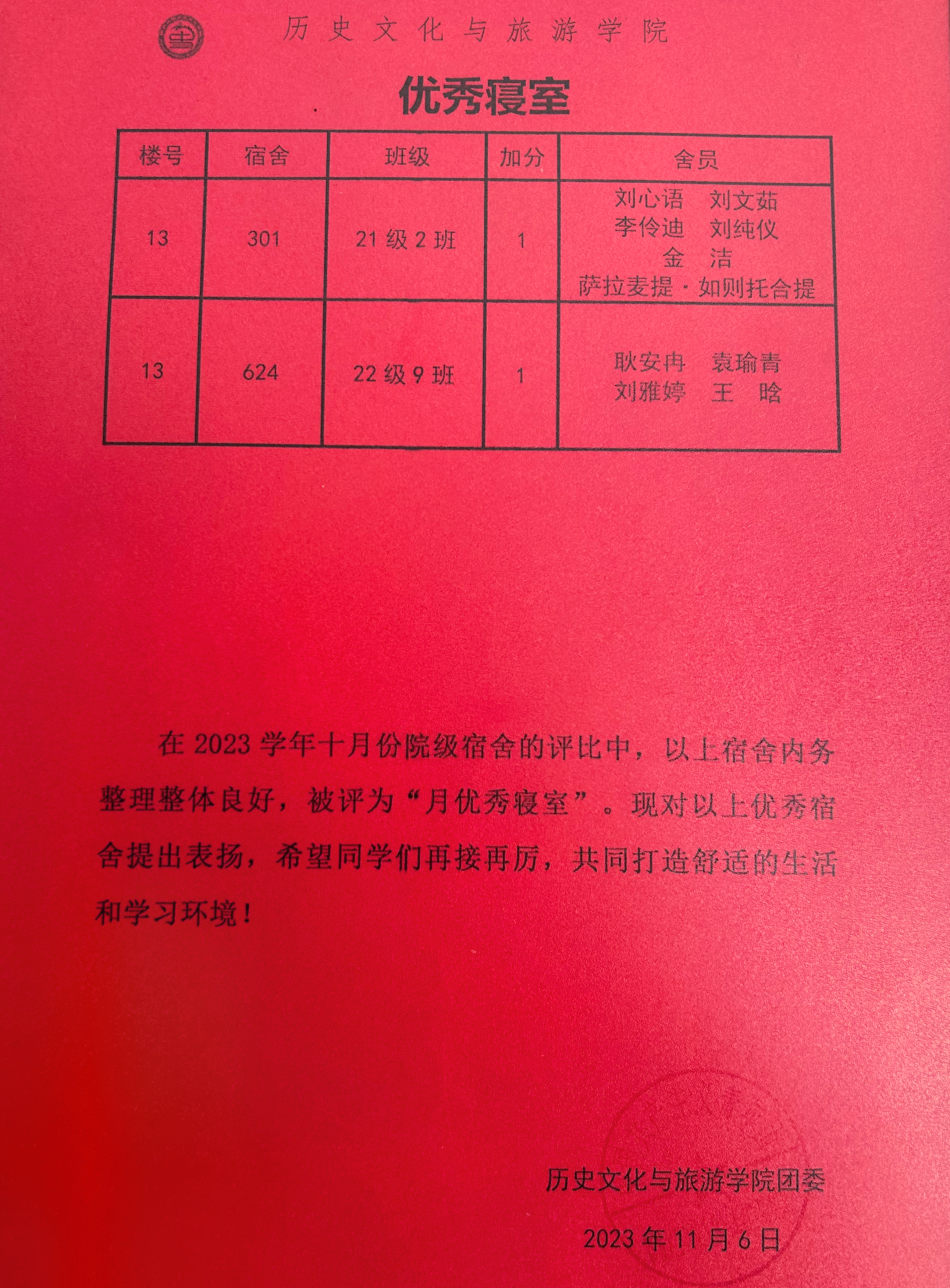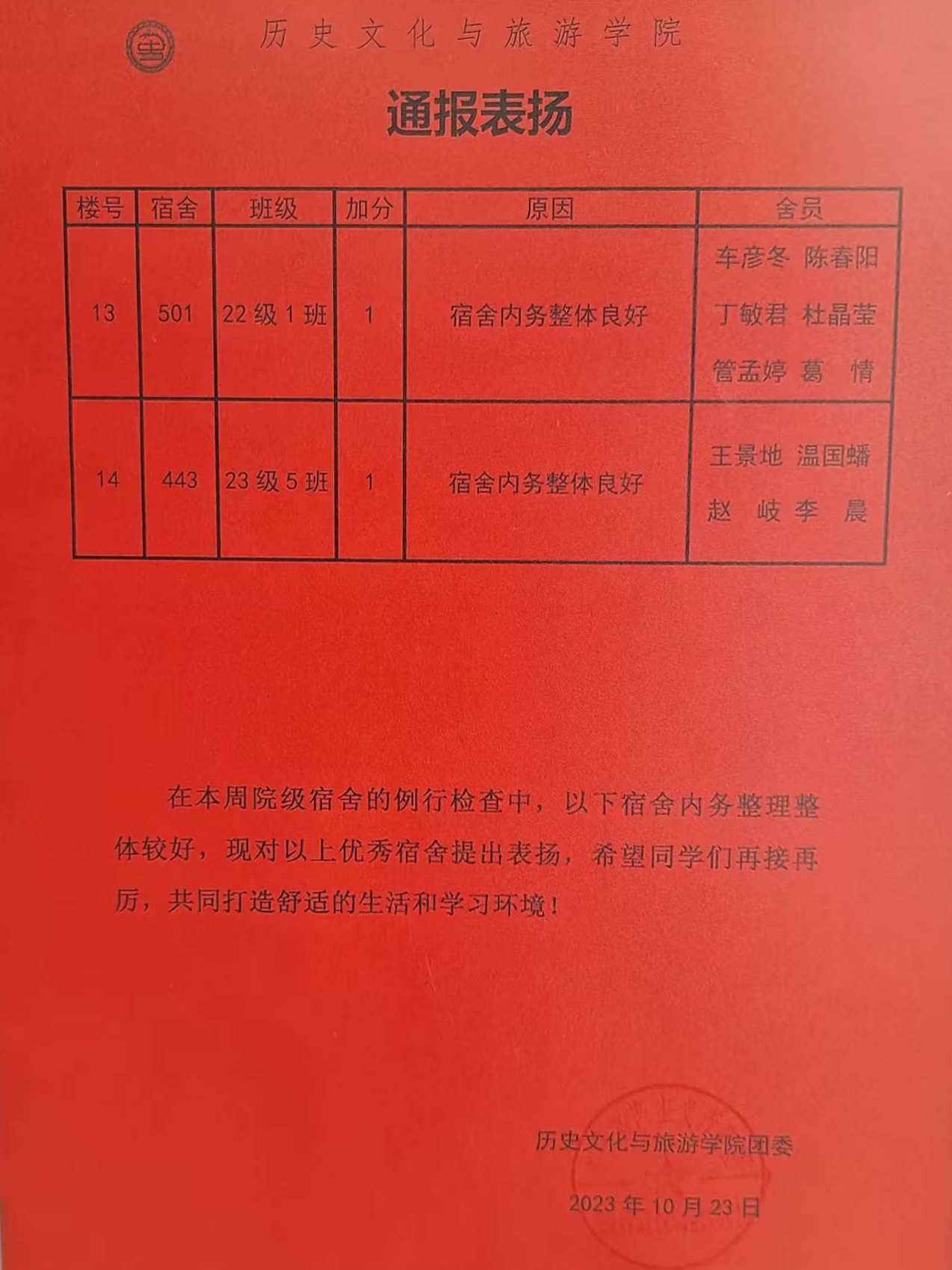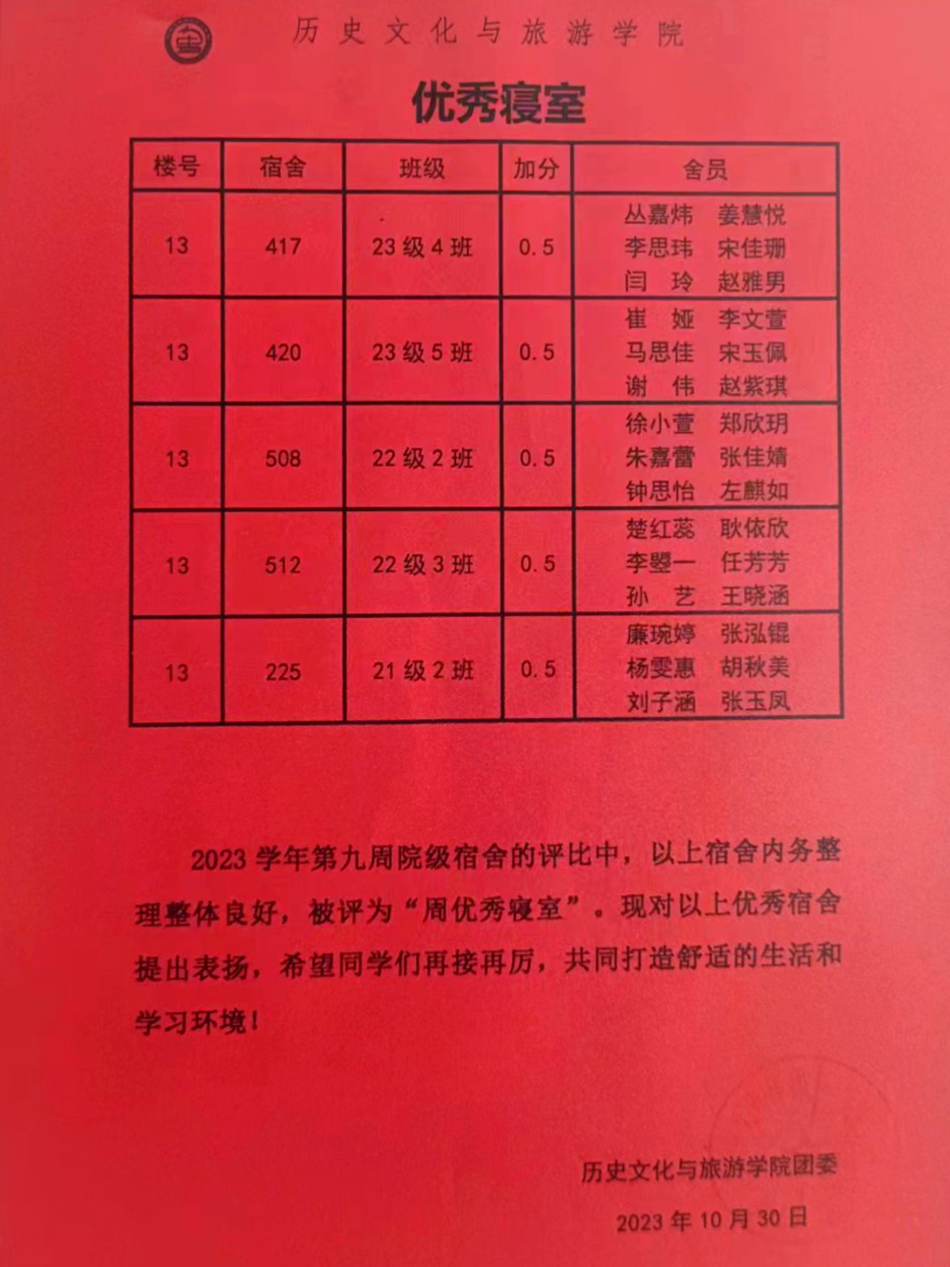 点击查看第八周至第十周宿舍评比名单