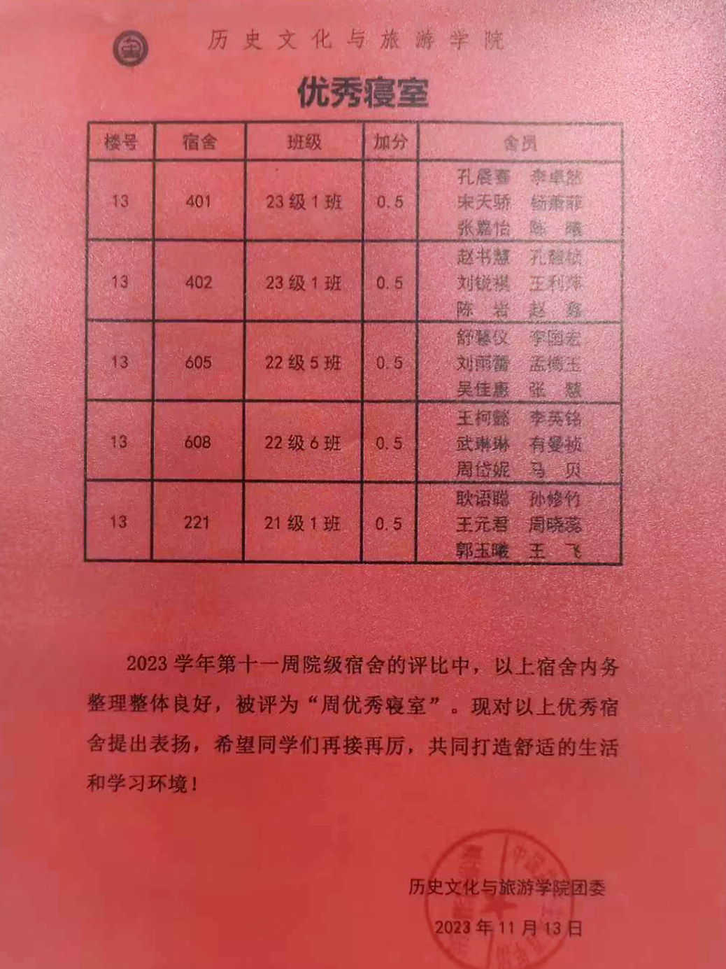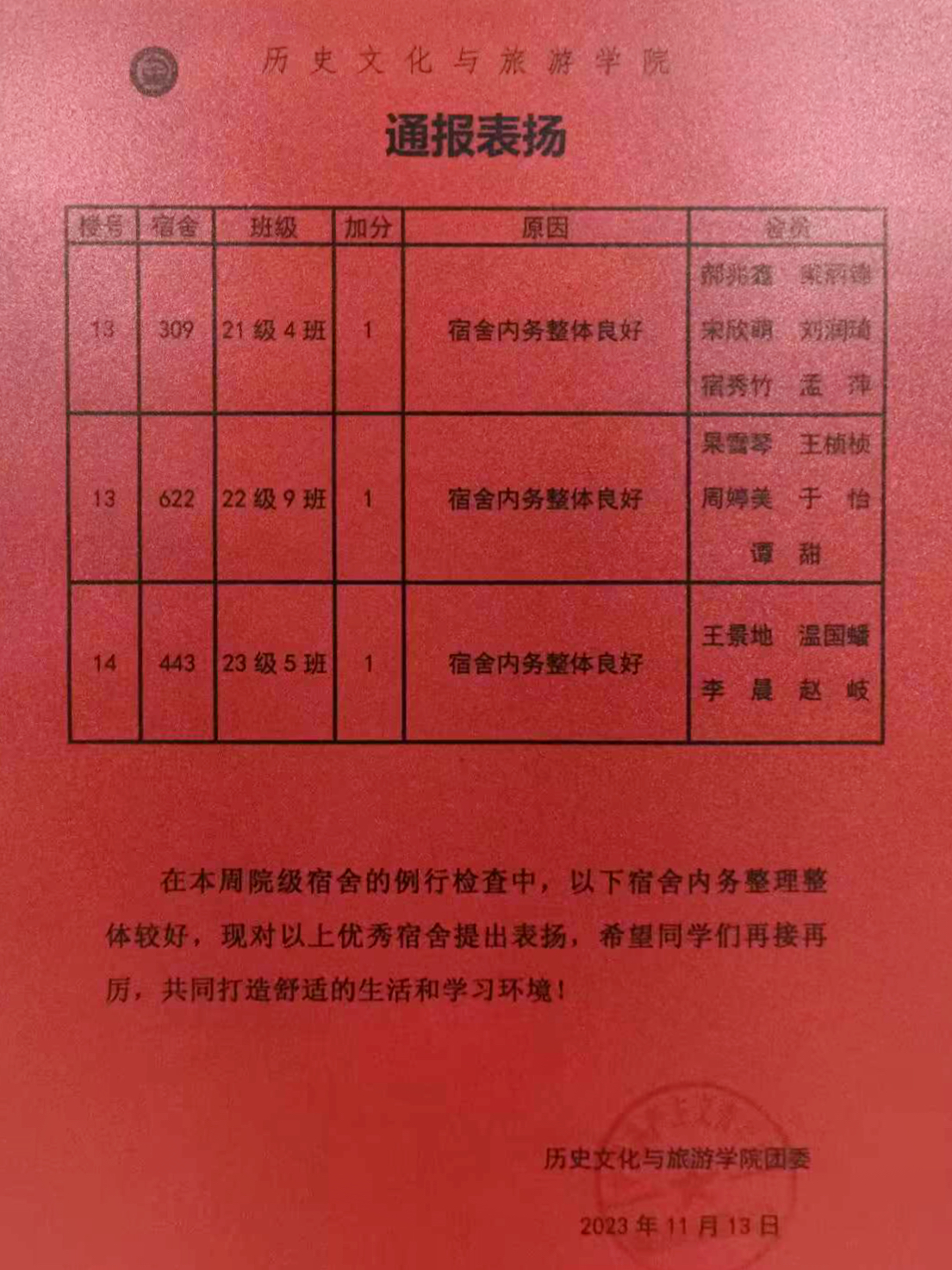 内务铭记于心,美丽长留心间。为建设温馨、和谐、整洁的宿舍环境,确保学生拥有优良的住宿体验,第十一周,第一版主