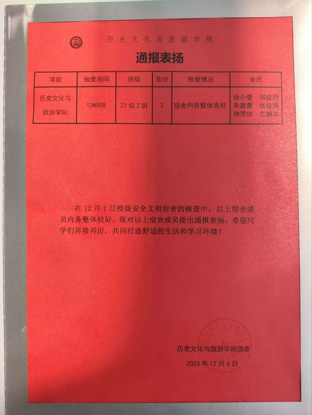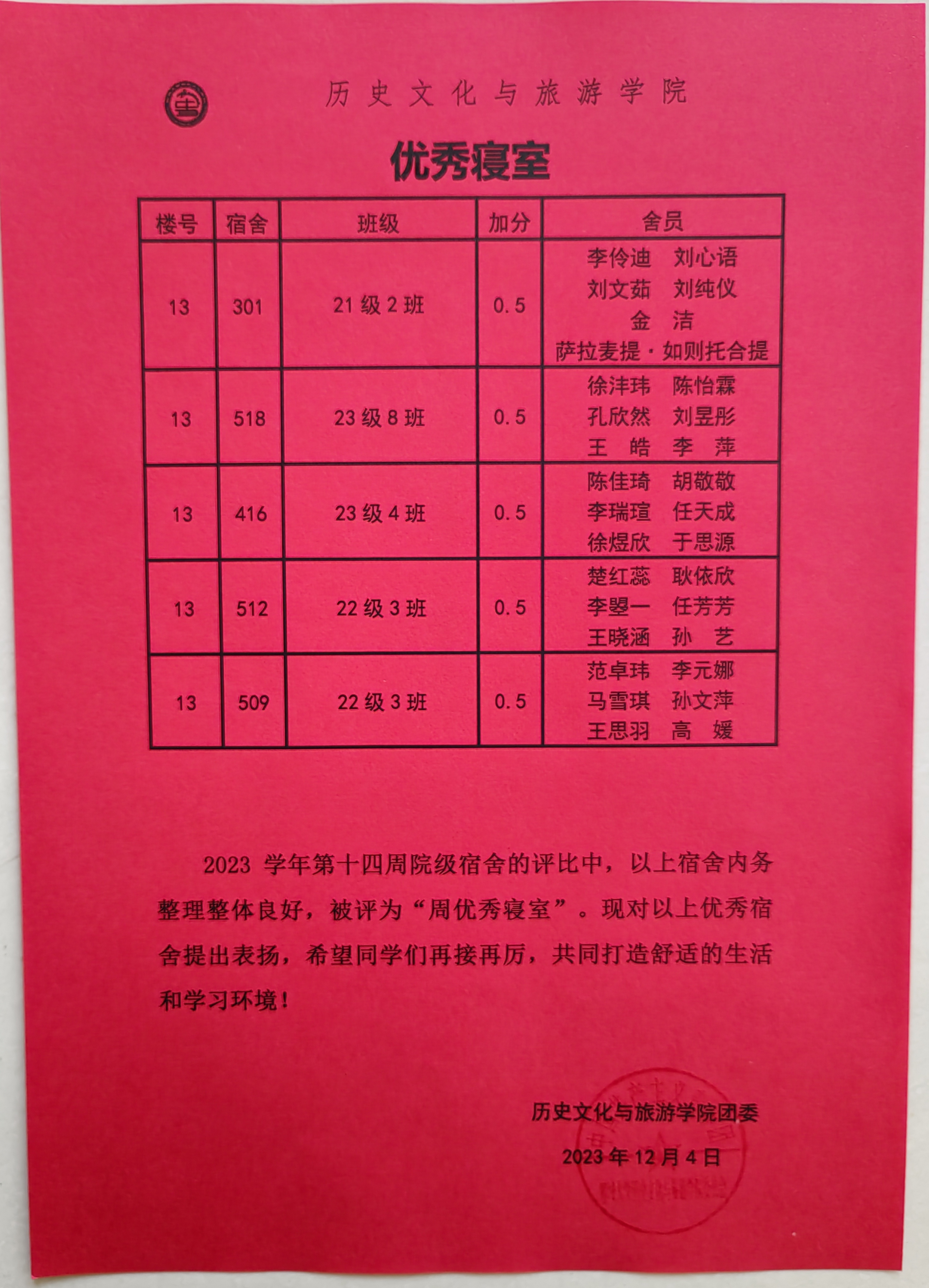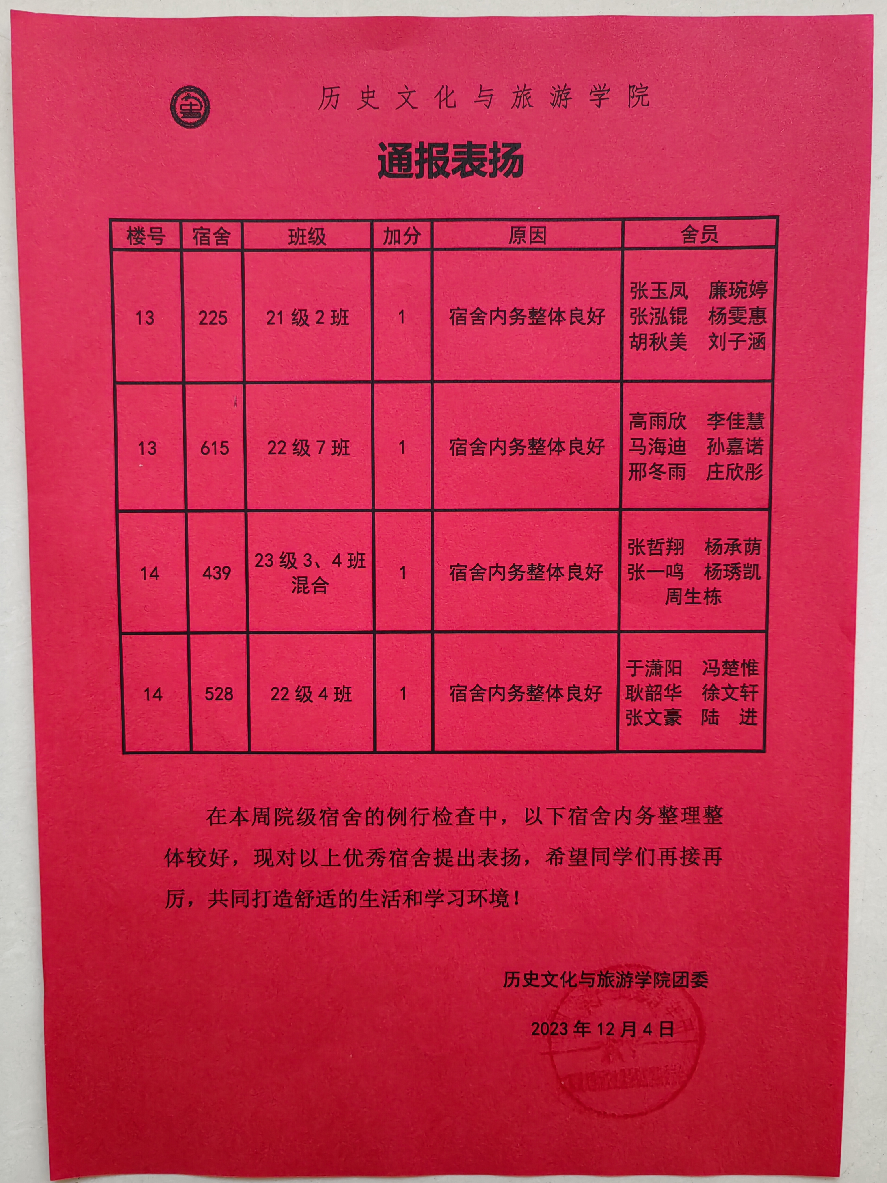 点击查看第十四周优秀宿舍评比名单