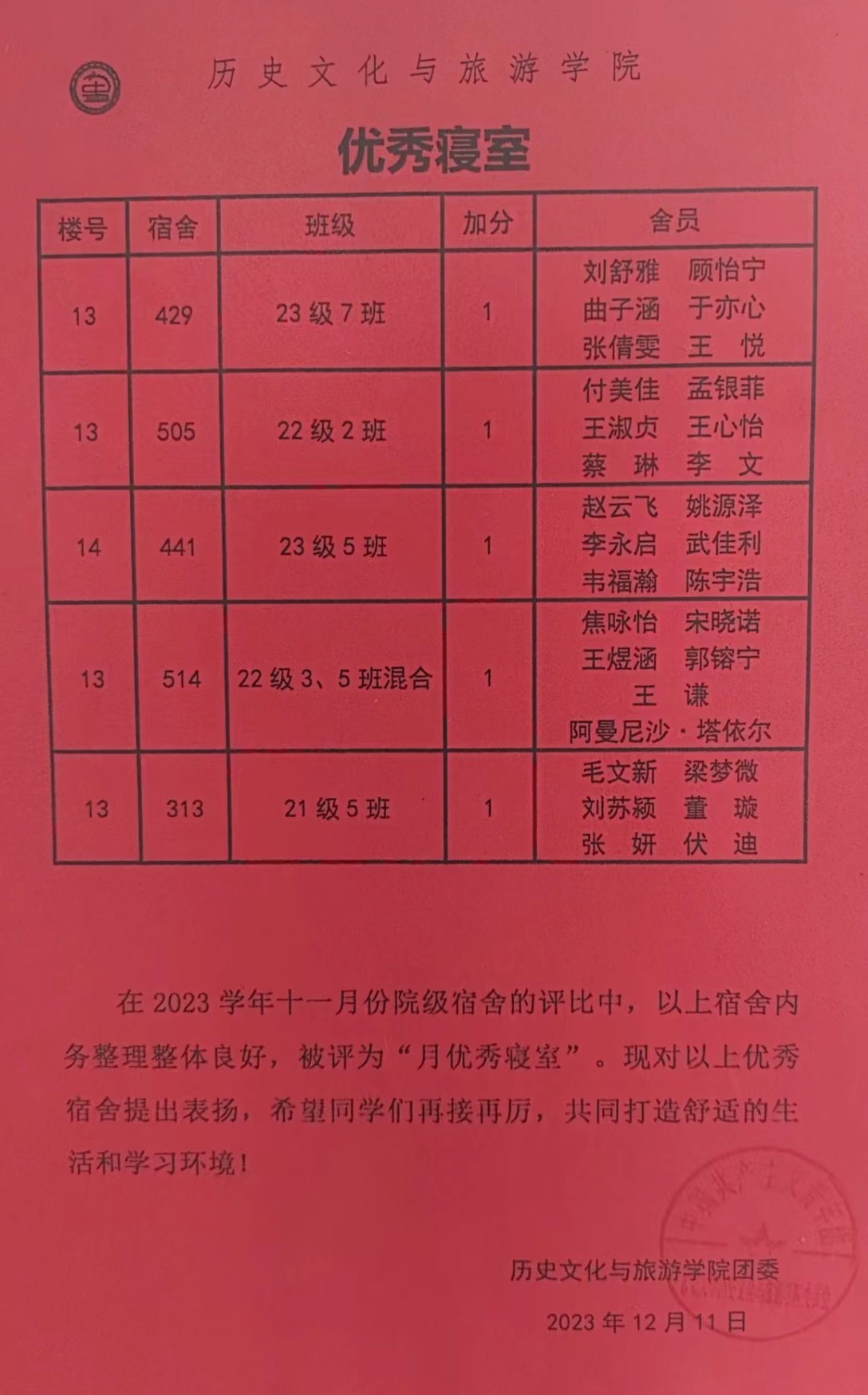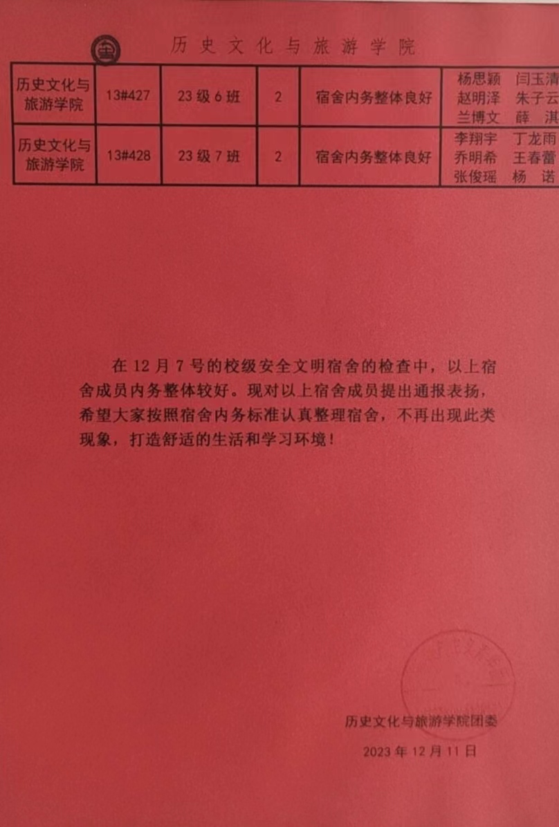 于群星公寓开展"十佳寝室"评比活动。 本次宿舍评比活动的顺利进行,有利于培养学生自律习惯,为日后的学习生活打下良好基础,也利于内部学风建设,充分展现第一版主