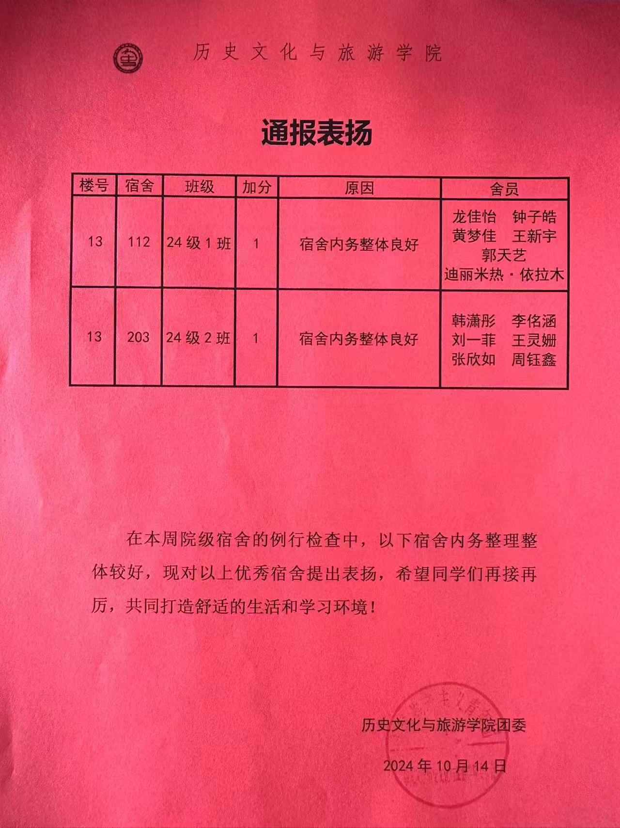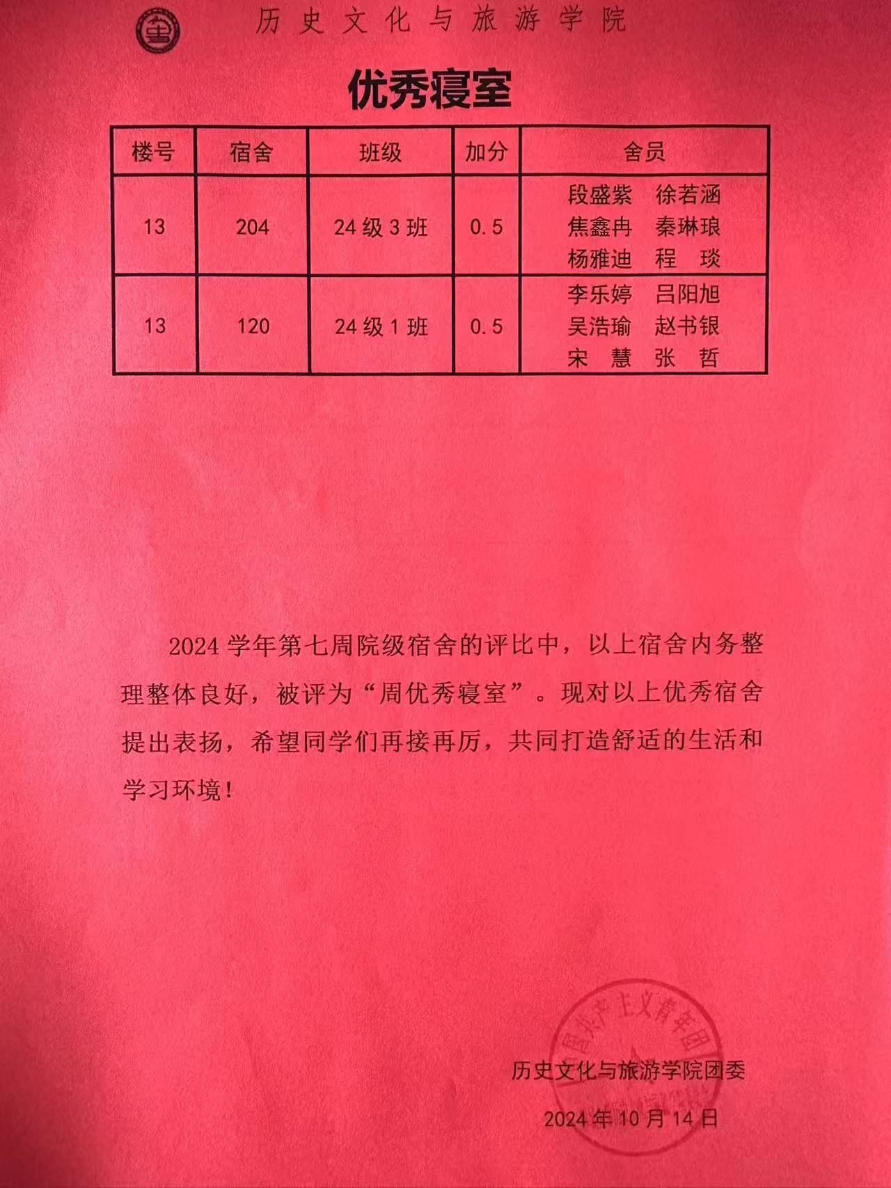 点击查看第七周优秀宿舍评比名单!