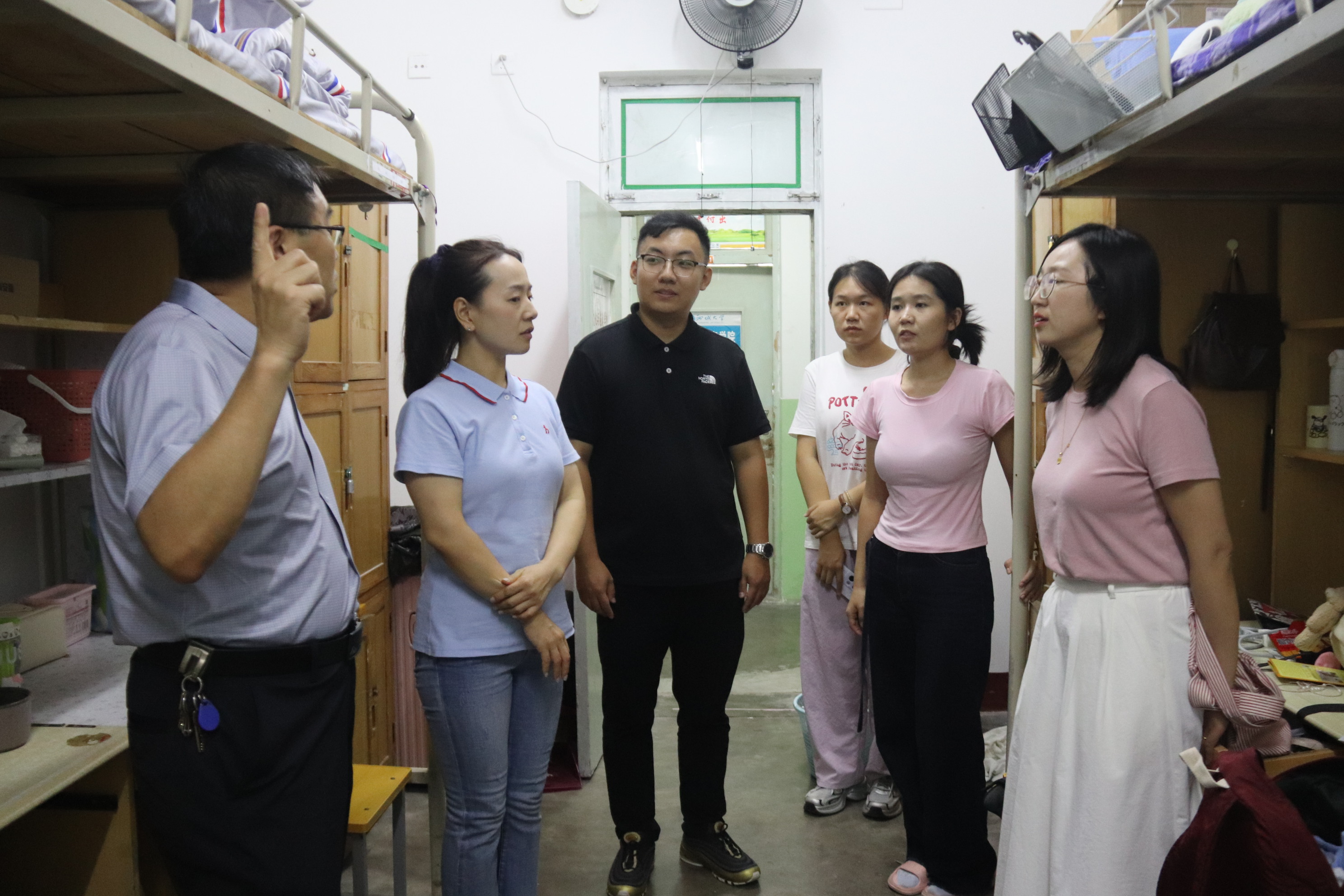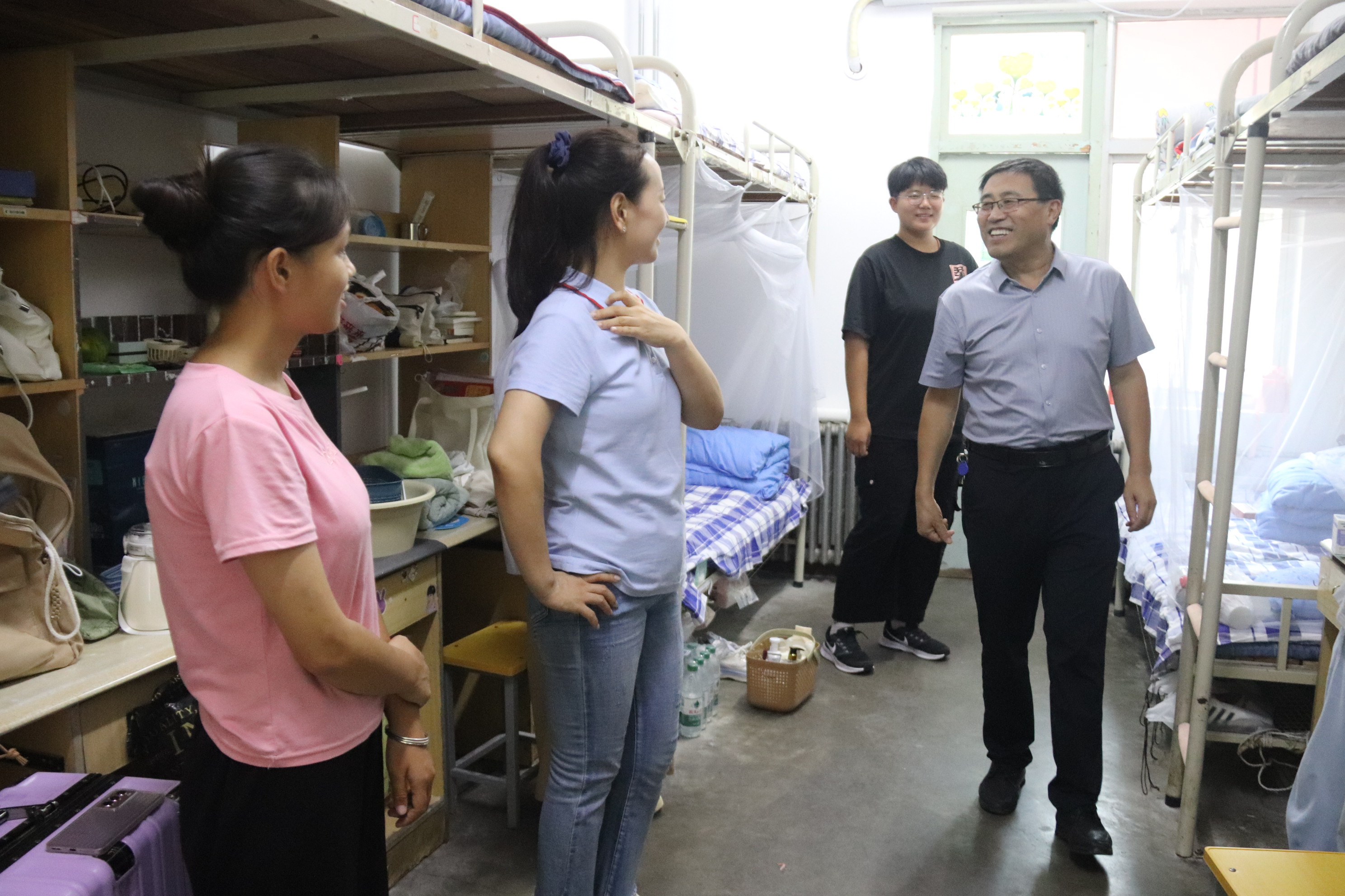 党委副书记卢庆洪,团委书记石晓晗,辅导员尤姗姗、陈泉润深入新生宿舍走访慰问。 在走访宿舍的过程中,老师们深入了解新生的住宿环境和生活状况。他们仔细查看宿舍设施,询问新生对宿舍生活的满意度,并就宿舍卫生与安全问题进行交流。同时,老师们还关心新生的学业情况,鼓励他们珍惜大学时光,勤奋学习,全面发展。 面对老师的关心与问候,新生们纷纷表示感谢,承诺会努力适应大学生活,保持刻苦学习、尊敬师长、团结互助的态度,提升个人综合素质,以优异的成绩回报领导和老师的期望与关爱。 老师们全面了解了新生的日常生活与学习状态,强调要持续优化宿舍管理服务,确保每位新生都能享受到温馨舒适的生活环境。此外,他们还提出,要积极采纳新生的建议,及时解决新生面临的问题。新生们对此感到十分暖心,对未来的大学生活充满信心与期待。 此次宿舍走访活动的成功开展,让新生们感受到学院的温暖,增强了自身的归属感。此外,这次走访慰问也进一步强化了师生之间的情感纽带,为营造和谐的校园文化氛围奠定了坚实的基础。 (供稿:王舒心 摄影:王舒心 初审:岳珍珠 复审:李友怡 终审:尤姗姗)