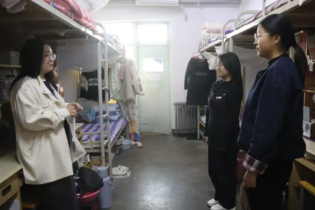 立德育人工作,深入了解家庭经济困难同学的学习和生活情况,增进师生间的交流,11月21日,本科生辅导员薛晓宇深入学生宿舍进行走访慰问,为同学送去温暖问候。 薛晓宇认真倾听同学们在学习和生活上的困惑,用温柔的话语开导学生,积极疏导和缓解学生的焦虑情绪,以减轻学生的心理压力。同时,她深入了解同学们对专业发展前景和未来就业的担忧,并耐心解答他们提出的问题。她鼓励学生在逆境中磨砺自我,保持乐观心态。针对大一新生,薛晓宇耐心询问同学们对大学生活的适应程度,倾听同学对学校工作的意见和建议,记录下同学的反馈。 薛晓宇强调,宿舍是同学们在大学里的一个小家,是放松身心、交流思想的重要场所。希望同学们能够合理安排学习与生活的时间,既要努力学习,也要注重身心健康,珍惜彼此之间的友谊,同时祝愿同学们愉快地度过这段美好的大学时光。一声声叮咛如春风拂面,为同学们拨开成长道路上的迷雾。 本次活动的顺利举办,不仅有利于帮助同学们缓解心理压力,帮助其成长为新时代全面发展的青年,更有利于拉近师生距离,使同学们感受到第一版主