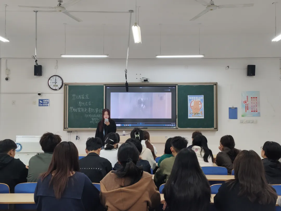针对学生宿舍开展全面的安全卫生检查工作。本次检查工作由辅导员陈泉润负责,23、24 级班团成员和宿舍管理中心同学共同参与。检查过程中,陈泉润深入学生宿舍,与学生进行亲切交流。他详细了解学生们的日常生活状况,并耐心地为学生们讲解宿舍安全与卫生的相关知识。本次宿舍秋季检查工作的顺利开展,不仅有利于排查设施隐患,还有利于维护卫生环境,强化学生自律与集体意识,促进学校对学生生活的了解与管理。 消防安全知识培训活动 为增强同学们的消防安全意识,推动学院安全工作的开展,11月15日,第一版主