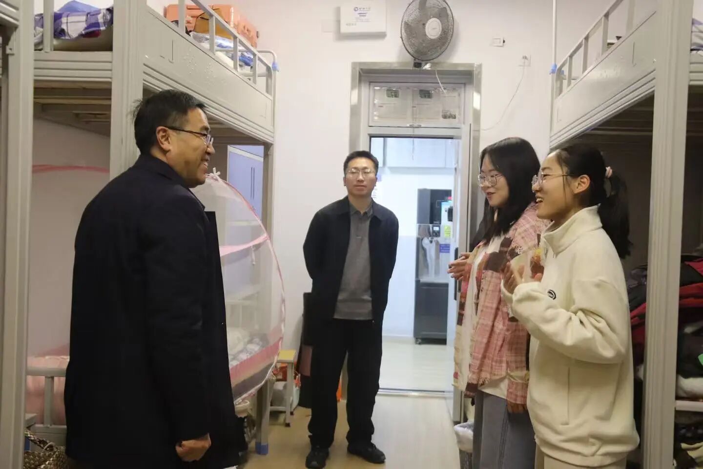 开展宿舍走访活动。学院党委副书记、副院长卢庆洪,团委书记石晓晗,辅导员王旭辉深入宿舍走访并进行慰问。 在走访过程中,老师们以宿舍安全排查为基础,重点查看宿舍内用电安全情况,进一步强化宿舍安全意识。老师们与学生亲切交谈,聚焦刚结束研究生考试的学生,细致询问其考试发挥、身心状态及作息调整情况,耐心倾听学生在备考过程中遇到的困难。针对学生近期的生活安排、毕业去向规划、寒假返乡准备等事宜,老师们认真倾听,并征集学生对学院教学安排、日常管理等方面的意见,精准掌握学生的实际需求。 面对学生在升学准备、就业选择等方面的困惑,老师们结合往届经验与学科实际,分享复试技巧与心态调节方法,引导学生科学规划后续安排、高效推进准备工作,并鼓励其保持信心,平稳度过考后关键期。卢庆洪叮嘱学生要重视身心健康,适当开展体育运动,保持积极向上的心理状态,合理调整作息,主动与辅导员、专业老师进行沟通交流,以乐观的心态面对未来发展的多种可能。 本次活动的顺利举办,不仅有利于缓解学生的焦虑情绪,帮助学生明确未来发展方向、增强信心,而且有利于增强学生的归属感,强化师生间的情感联结,助力学生全面发展与成长成才,为提高学院管理水平奠定基础。 (供稿:王青 朱妍 陆雅馨 初审:陆雅馨 复审:宋佳珊 终审:尤姗姗)