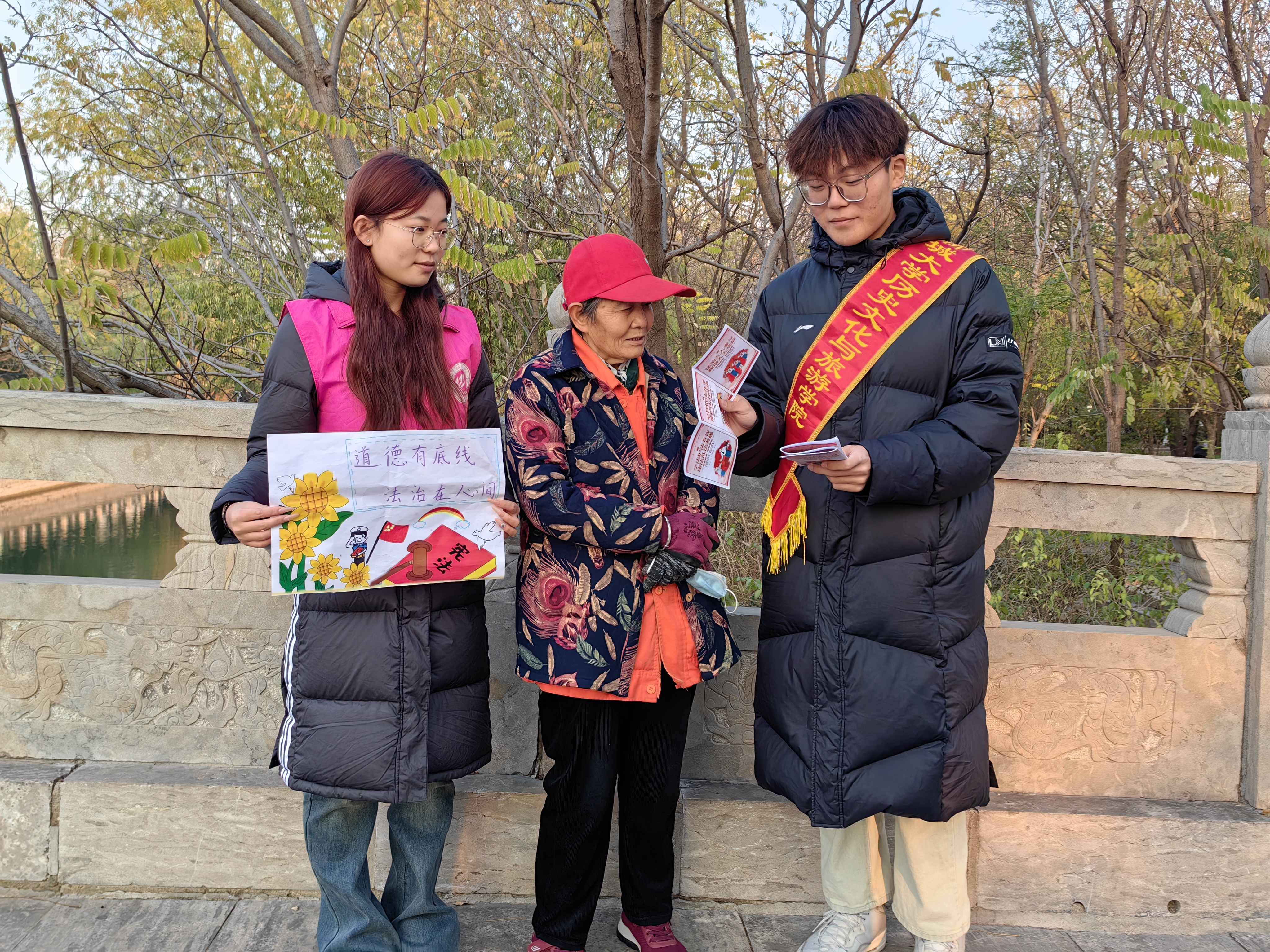 于文轩社区举办“筑牢健康防线,远离艾滋威胁”社会实践活动。 志愿者借助宣传海报,向群众详细地讲解艾滋病的病因、危害及预防措施。志愿者还以问答形式揭开群众对艾滋病的认识误区。志愿者和群众积极互动,在让群众学习艾滋病常识的同时,进一步调动群众的积极性,有效地向群众普及预防艾滋病的相关知识。 此次活动的顺利举办,不仅有利于群众深入了解艾滋病的传播途径,有效预防艾滋病的传播,更有利于增强群众对艾滋病防治工作的责任感与参与度,共同推动社区艾滋病防治工作的开展。 道德有底线 法治在心间 为提升群众法律素养,强化群众法治观念与守法意识,12月5日,第一版主