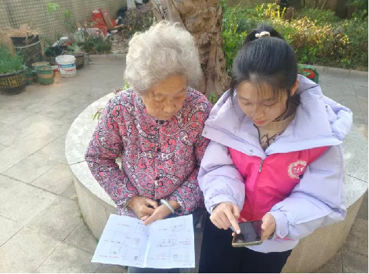 智伴同行,情暖夕阳。当数字浪潮奔涌向前,银发群体的融入之路也正稳步铺展。从智能手机的操作指引,到线上服务的便捷使用,帮扶不再是单向的输出,而是跨越代际的温暖陪伴。 为破解老年群体数字应用难题,助力银发群体与数字时代接轨,守护晚年生活的幸福感与安全感,近日,“智伴夕阳”志愿服务队走进社区院落,以耐心化解数字焦虑,以专业点亮银龄生活,在充满烟火气的邻里间,书写了一幕幕温情的服务答卷。 启智能之门 激银发之乐 为弘扬敬老爱老传统美德,打破老年群体与智能科技隔阂,丰富老人精神文化生活,近日,第一版主