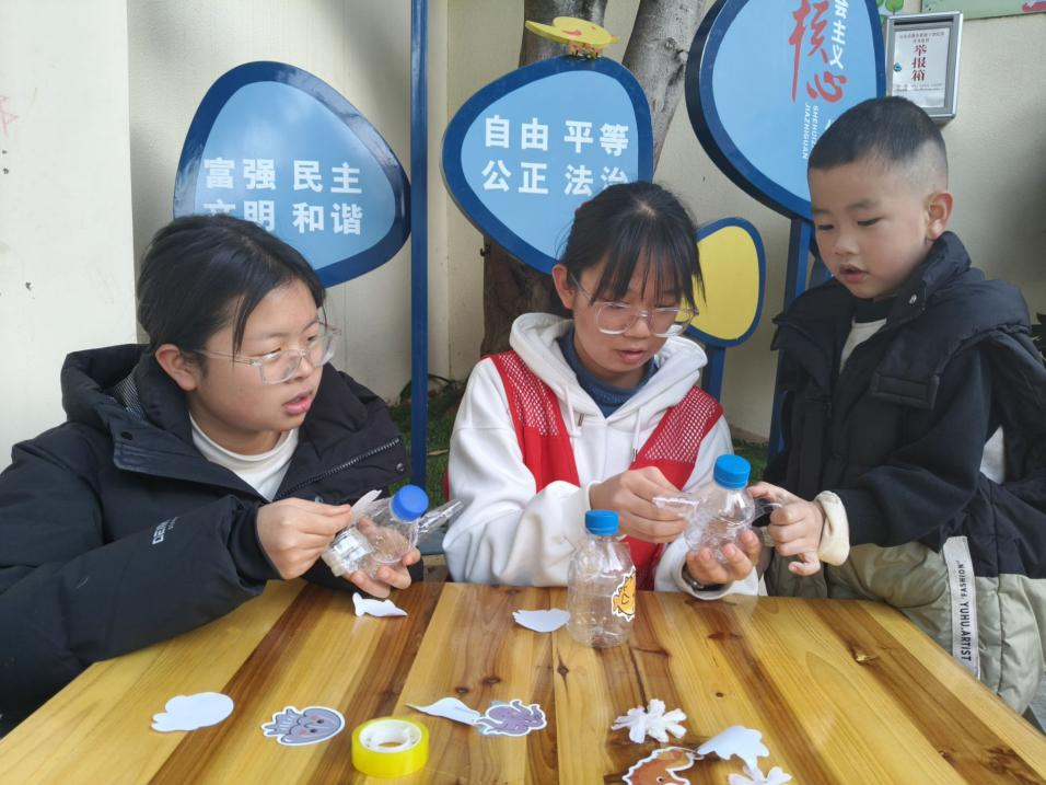 于丘北县锦屏镇振兴社区举办“滴水之恩情,智慧之源泉”活动。 志愿者向儿童细致讲解太平洋岛国面临的气候变化与海洋塑料污染现状。儿童积极思考,深刻认识到低碳绿色生活与资源循环利用的重要意义。在手工制作环节,志愿者为儿童准备好废旧塑料瓶、剪刀、贴纸等手工材料,并引导儿童在瓶身贴上各式海洋生物贴纸,将废旧塑料瓶巧妙转化为实用的园艺工具。志愿者鼓励儿童主动上台展示并介绍自己的作品,在实践体验中深化对资源循环利用的理解。 本次活动的顺利举办,不仅有利于引导儿童建立资源循环的责任意识,而且有利于推动低碳环保理念融入社区乡村,为“双碳”目标在基层落地落实贡献青春活力。 刻下水城印 回响海岛声 为推动文化传承与环保行动深度融合,凝聚社区发展合力,强化群众的文化自信与环保担当,近日,第一版主