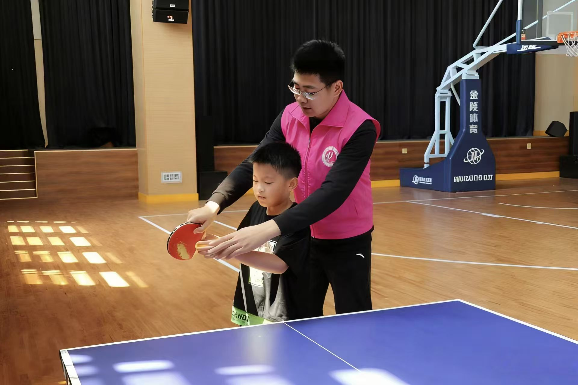 当乒乓跃动勾勒出青春的弧线,当排球传递凝聚起协作的力量,校园体育的脉搏在每一次挥拍与奔跑中强劲跃动。这不仅是对体魄的锤炼,更是意志的磨砺与团队精神的生动课堂。 为深化体教融合,让体育精神照亮成长旅程,“运育未来”志愿服务队走进运动场,将体育技能化为生动教学与温暖陪伴,在学生心中深植热爱运动的种子,为校园生活注入蓬勃朝气。 乒乓强体魄 运动润青春 为深入贯彻落实全民健身国家战略,提升儿童身体素质,近日,第一版主