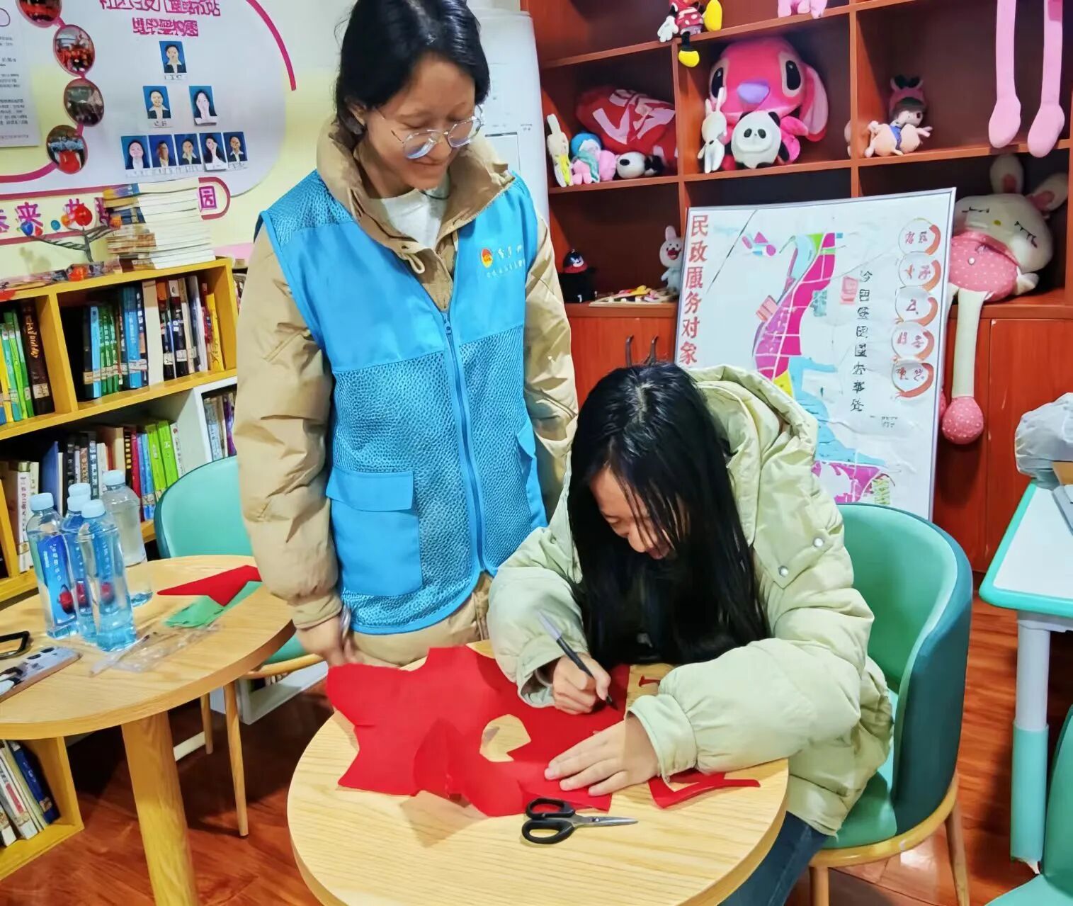 于贵州省都匀市沙包堡街道匀杨社区举办“剪纸识红色英雄,巧手传革命精神”活动。 活动现场,志愿者提前布置场地,精心摆放雷锋、小萝卜头、王二等红色人物的剪纸底稿,并备好剪刀、红纸等工具。活动中,志愿者向群众介绍活动意义、具体流程,阐述剪纸艺术与红色文化之间的内在联系。群众选择心仪底稿,在志愿者的引导下认识人物形象,聆听英雄事迹,进一步加深对革命历史的了解。志愿者示范剪纸技巧,群众动手创作,在实践中用心勾勒红色记忆,作品饱含对英雄的敬仰之情。 本次活动的顺利举办,不仅有效激发群众对红色历史的探索兴趣,而且有利于提升群众的动手能力与审美素养,为社区营造崇尚英雄、传承红色基因的良好氛围。 九扭扭棒绘红韵 手作传承红色魂 为深入传承红色基因,赓续红色血脉,引导儿童厚植爱国情怀,近日,第一版主
