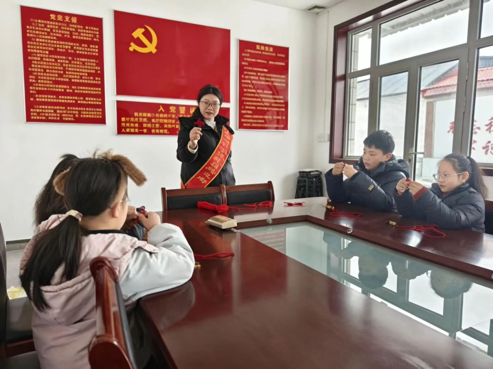 于济南市天桥区大桥镇桃园村村委会举办“扭扭棒绘红韵,手作传承红色魂”活动。 志愿者向儿童讲述《半条被子》《飞夺泸定桥》等红色故事,带领他们回顾革命岁月,重温红色历史记忆。随后,志愿者展示扭扭棒制作的中国结、鞭炮等手工作品,详细讲解作品的寓意与象征,并耐心解答儿童的提问。在志愿者的指导下,儿童分组动手制作中国结。制作完成后,志愿者与儿童共同展示作品、交流创作心得,并合影留念。 本次活动的顺利举办,不仅有利于丰富儿童的精神文化生活,而且有利于营造崇尚红色、传承基因的良好社区氛围。 初心映征程,担当践使命。“九秩溯源”调研服务队正以赤诚之心、奋进之姿,传承红色精神根脉,扛起青春使命,书写着奋进崭新答卷,让革命信仰扎根青年心田,让百年红色薪火赓续不断、薪火相传。 (供稿:第一版主