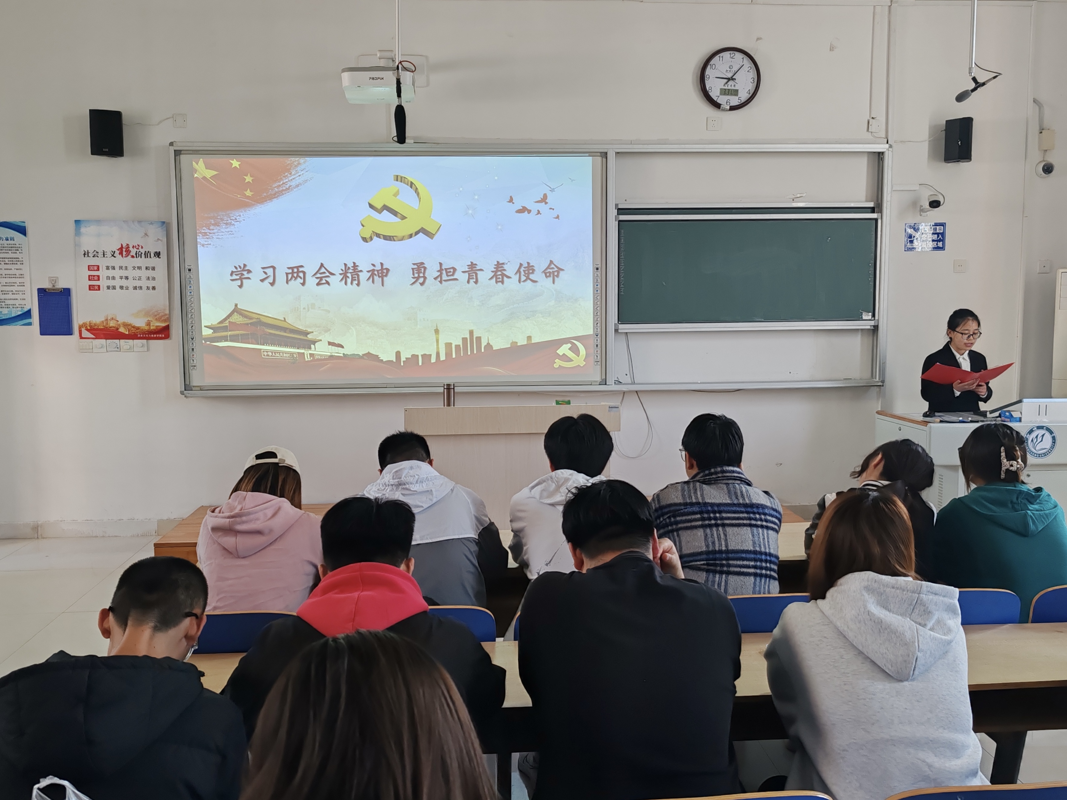 为引领青年学生深入学习两会精神,提升青年学生思想道德素养,培育信仰坚定、能力突出的新时代社会主义接班人,3月31日,我院于6#A502教室举办“学习两会精神,勇担青春使命”第四期青马工程培训会。2022级全体学生干部参加本次培训会。 会议伊始,主讲人从两会知识介绍、报告流程、报告热点、精神学习四部分展开讲解,简要概述两会基本概念与内涵,引导同学们明确其举办流程。同时,主讲人在叙述两会报告热点时,紧扣发展新质生产力的要点进行展开,即四个“新”——新链条、新优势、新引擎、新赛道,并强调两会在不同领域提出不同的讨论热点,如量子技术、生命科学等崭新赛道。 随后,主讲人通过开展击鼓传花环节,带领同学们进一步深入学习领会两会精神,并以趣味问答的形式,鼓励同学们关注时事政治,发扬两会精神,在学习工作中勇攀高峰、不懈努力,为实现中华民族伟大复兴的中国梦贡献自己的力量。 会议最后,主讲人播放两会相关视频,视频呈现出两会召开的具体情形,同时体现两会盛况中新思想、新理念的相互碰撞对改革创新的巨大作用,重申学习两会精神对于推动国家发展的重要意义。 本次青马工程培训会,使青年学生深入学习了“两会”提出的重要理论,巩固了对党史与团史的深入理解,引导青年学生培养对党、国家和社会主义的情感认同,努力成长为社会主义建设者和接班人。希望同学们在今后的学习生活中脚踏实地、敢走新路,为国家发展注入源头活水,用实干实绩书写青年担当。 (供稿:刘舒雅 摄影:刘舒雅 初审:李月 复审:吴志钰 终审:尤姗姗)