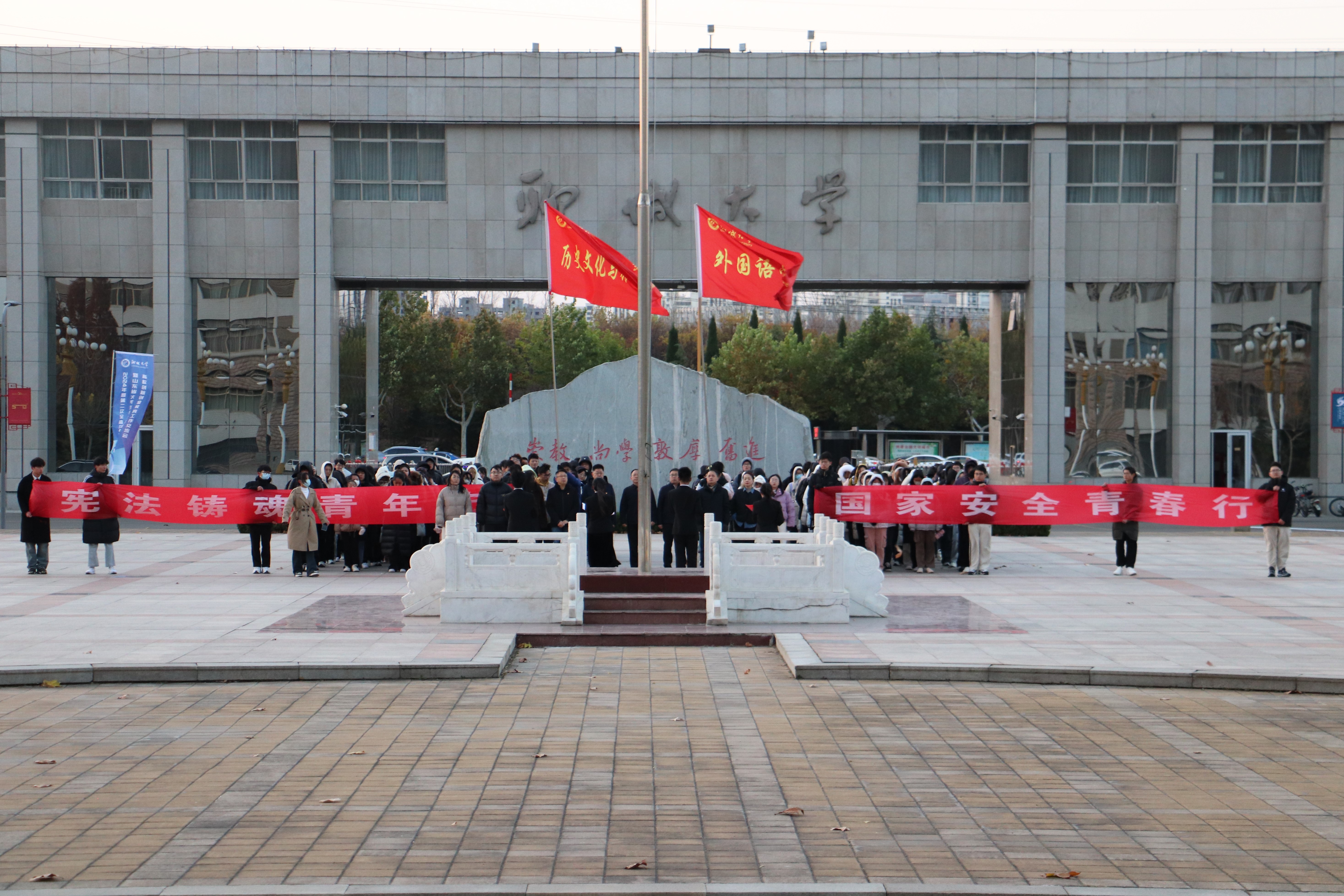 第一版主 与外国语学院共同承办“崇宪弘德业 固安谱华章”升旗仪式