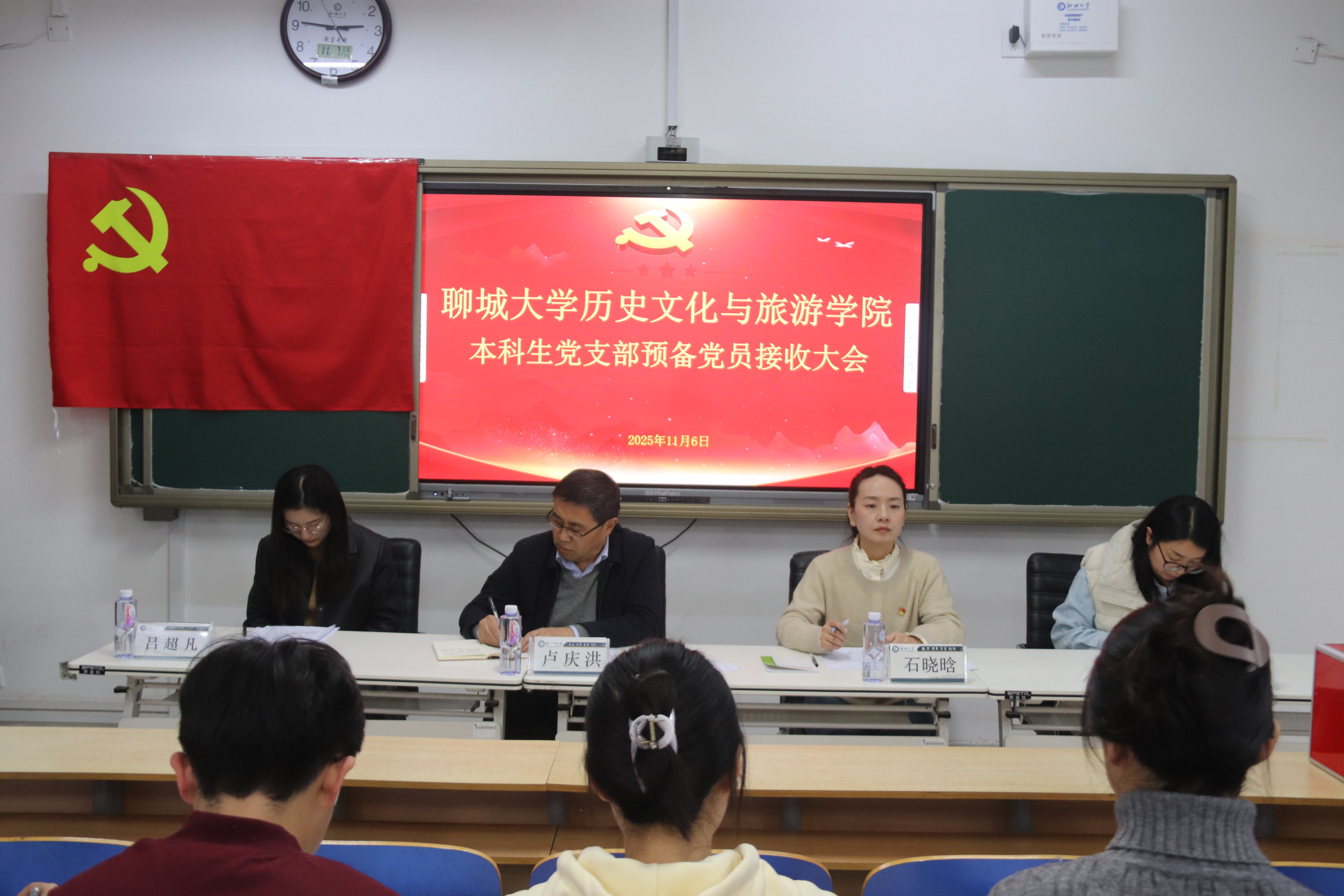 于6#A404教室召开本科生党支部预备党员转正大会。学院党委副书记、副院长卢庆洪,本科生党支部全体成员出席本次会议。 大会上,李文晴等14位预备党员提出转正申请,汇报了预备期思想、学习、工作情况,表达了按期转正的态度与决心。预备期培养联系人立足日常考察,逐一介绍其在党性修养、组织生活参与等方面的成长进步,客观评价并支持全体同志按期转正。经与会正式党员无记名投票,大会一致同意14位同志按期转为正式党员。 赵亿同志代表新转正党员作表态发言。她表示,成为中共正式党员既是荣誉更是责任,未来将始终以党员标准严格约束自身言行,持续深化党的创新理论学习,以实际行动践行入党誓言,诠释对党的绝对忠诚。 卢庆洪在总结讲话中对新转正党员表示祝贺,并提出四点期望:一是筑牢思想根基,深化理论学习实效;二是锤炼务实作风,主动担当育人使命;三是保持谦逊姿态,持续改进自身不足;四是强化党员意识,彰显先锋模范本色。 会议最后,大会举行庄严的入党宣誓仪式。全体新转正党员面向党旗肃立,右拳高举,在领誓人的带领下铿锵宣誓,用铮铮誓言践行初心使命,彰显对党的忠诚与担当,为本次大会画上圆满句号。 本次大会的顺利召开,为学院党员队伍补充了新鲜血液,进一步强化了全体党员的责任意识与使命担当,为党建与育人工作深度融合奠定了坚实基础。下一步,第一版主