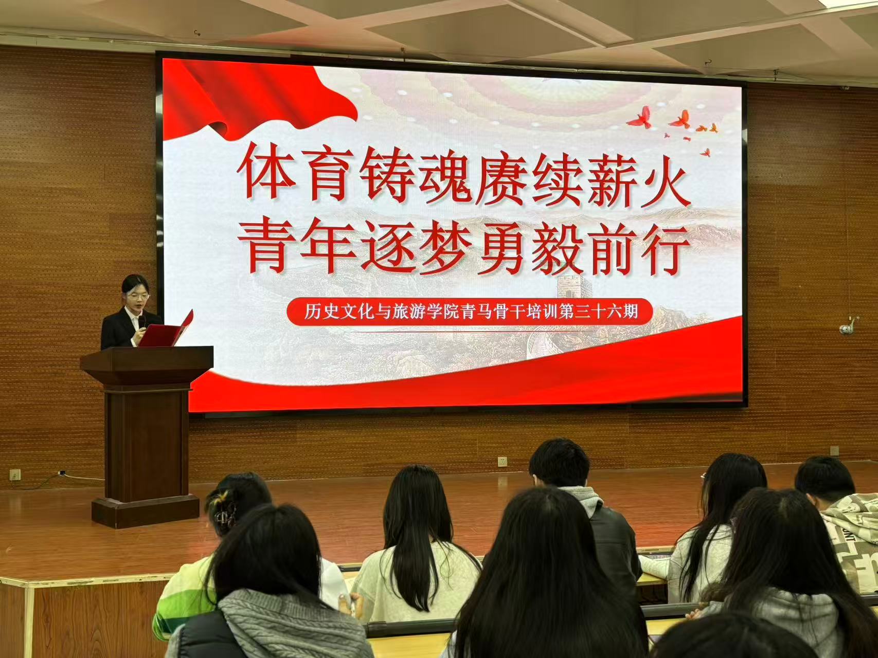 于6#A106报告厅举办“体育铸魂赓续薪火,青年逐梦勇毅前行”第三十六期青马工程培训会。 主讲人全面介绍第十五届全运会的整体概况,系统阐述其在推动全民健身普及、提升竞技体育水平中的支撑作用。同时,主讲人深入解读体育强国战略的深刻内涵与核心意义,明晰其对于增强全民体质、赋能国家发展、振奋民族精神的重要价值。学生专注聆听、认真记录,现场学习氛围浓厚。 为增强学生对我国体育强国建设历程的直观感受,全体成员共同观看纪实视频《狮跃东方,全运开场》。视频以醒狮精神为引,生动展现中国体育事业发展的奋斗足迹与辉煌成就,映照出在党的领导下国家走向复兴的壮阔图景,引导学生深切体悟体育精神与民族命运的内在联结。在互动交流环节,在场学生围绕全民健身实践与体育精神传承等话题展开热烈讨论,现场气氛热烈活跃,学生在思想碰撞中进一步深化对体育强国战略的认识。 本次培训会的顺利举办,不仅有利于深化学生对体育强国的理解,明晰体育与国家发展、民族精神的紧密关联,而且有利于推动学生将个人理想融入国家发展大局,激发文化自信与民族自豪感。下一步,学院将持续深化教育成效,引导学生在体育锻炼中磨砺意志,成长为堪当民族复兴大任的时代新人。 (供稿:李心悦 王青 郭艺泽 初审:郭艺泽 复审:宋佳珊 终审:尤姗姗)