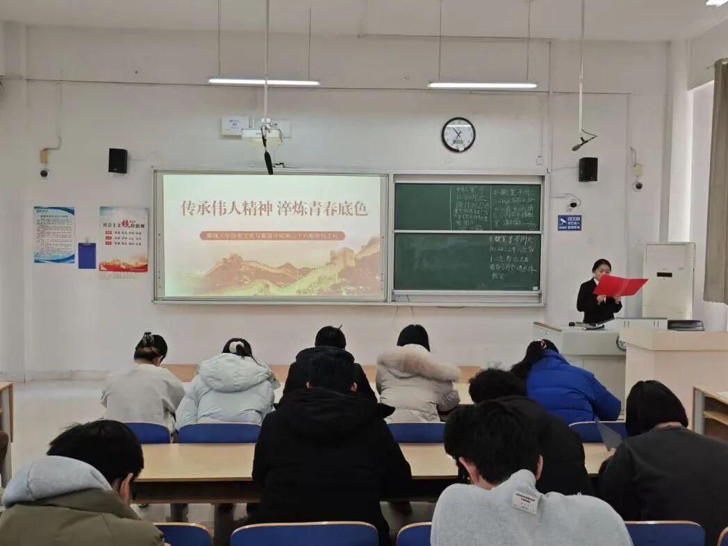 于6#A502教室举办“传承伟人精神,淬炼青春底色”第三十六期青马工程培训会。 理论宣讲环节,主讲人紧扣学思想、践初心、担使命三大核心维度,深入阐释毛泽东同志实事求是的思想,细致剖析其服务人民的实践智慧。同时,主讲人着重强调艰苦朴素、终身学习等优良作风的时代引领价值,帮助青年学生全面把握伟人精神的核心要义,筑牢思想根基。 理论宣讲结束后,全体参会成员共同观看纪录片《走近毛泽东》。影片通过珍贵的历史影像,全景再现毛泽东同志从探索真理到领导革命的壮阔奋斗历程,直观映照共产党人的初心使命与责任担当,让学生在沉浸式观影体验中深化对伟人精神的情感认同,清晰认知个人成长与时代使命的内在关联。 互动交流环节中,在场学生结合自身学习与实践经历分享感悟体会。他们纷纷表示,通过此次培训,对伟人精神的理解更为系统深入,未来将以此精神为滋养与指引,坚定理想信念、强化责任担当,努力成长为能够勇担重任的先进青年。 本次培训会的顺利举办,不仅有助于学生深刻领会伟人精神的内涵,激发其自觉锤炼品格、提升修养的内在动力,更有助于引导学生将学习收获转化为实际行动,在日常学习与奋发实践中夯实信仰根基,为民族复兴伟业建设贡献青春力量。 (供稿:李心悦 张旭 初审:郭艺泽 复审:宋佳珊 终审:尤姗姗)