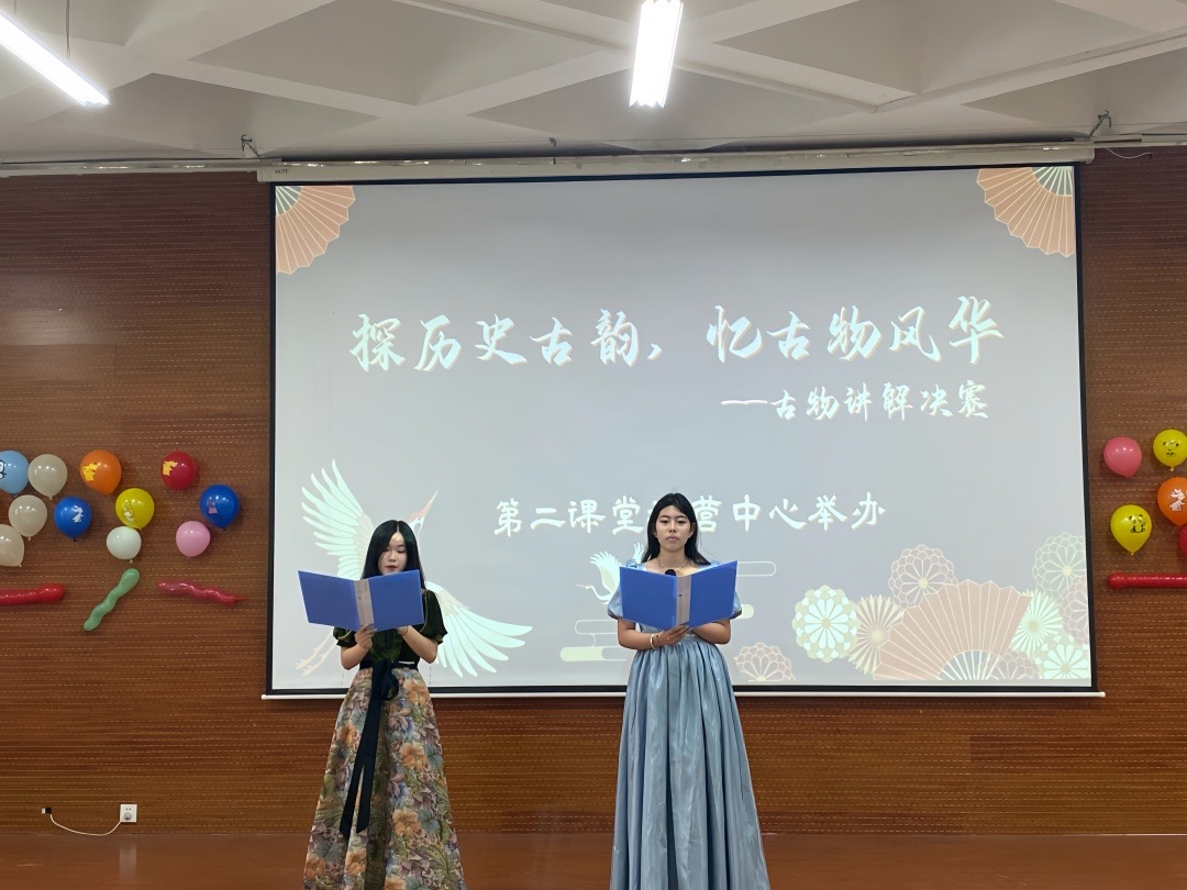 于6#AA106报告厅举办“探历史古韵,忆古物风华”古物讲解决赛。 深入历史的纹理,借由文化之光的照射驱散历史的尘埃,让文物在岁月的长河中熠熠生辉,焕发出不朽的魅力与活力。比赛在充满活力的开场舞中拉开序幕。在主持人的引导下,选手们依次上台答题。随后,选手们结合PPT详细讲解古物背后的故事。本次讲解涉及马踏飞燕、战国铜餐具等古文物。选手们满怀激情地向观众讲述着展品背后所蕴含的小故事,让每一件文物仿佛拥有了生命,诉说着它们所经历的风雨岁月。其中,徐煜欣以生动形象的语言对马踏飞燕进行讲解。这件闻名遐迩的艺术珍品,以其独特的造型和卓越的工艺,展现了我国古代艺术的高超水平。它独特的外形深深吸引着观众的注意。王欣瑶结合史料和所学知识,介绍战国铜餐具。战国铜餐具制作工艺精湛,器型精美且实用性强,展现了工匠们的高超技艺,这些餐具有着巧夺天工设计,以及精准的制作工艺,都令人赞叹不止。他们全方位展示了文物的外形、起源、用途等,挖掘古文物背后所蕴含的历史记忆和文化精髓。观众仿若置身历史长河之中,沉浸体验古文物之美。紧接着,刘奕菲同学给观众带来舞蹈表演《像鱼》,舞姿翩翩,每一个动作都充满了艺术的气息。比赛氛围轻松愉悦。经过激烈的角逐,徐煜欣获得一等奖,王欣瑶获得二等奖,赵欣雨、薛淇获得三等奖。 本次活动的顺利举办,有利于传承中华优秀传统文化,激发同学们的文化自信心和民族自豪感,营造崇尚历史、珍视文化遗产的校园文化氛围,为文物事业的传承发展注入新的活力。 (供稿:阿依布拉克·艾尼 摄影:阿依布拉克·艾尼 初审:张程程 复审:吴志钰 终审:尤姗姗)